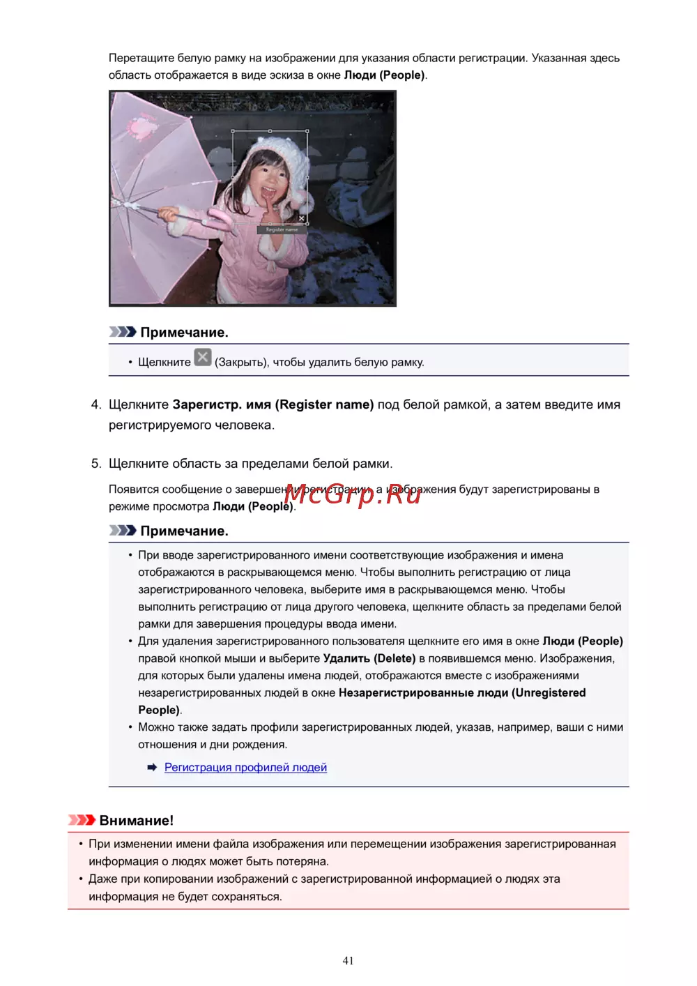 • Даже при копировании изображений с зарегистрированной информацией о людях эта