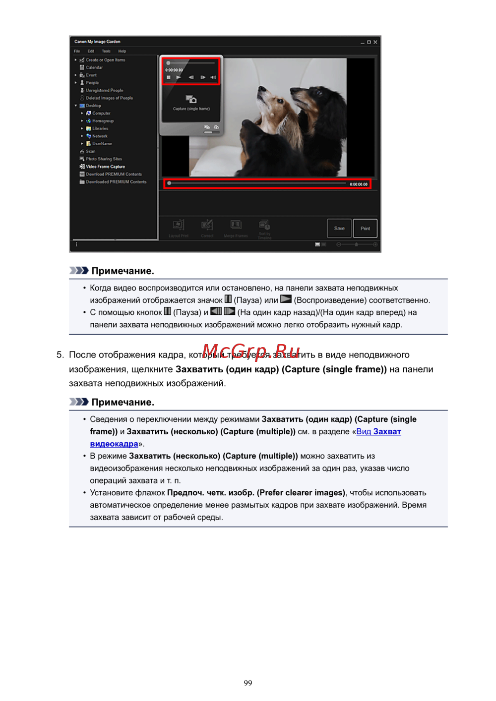 - Захват и печать неподвижных изображений из видеоизображений 98 p.2