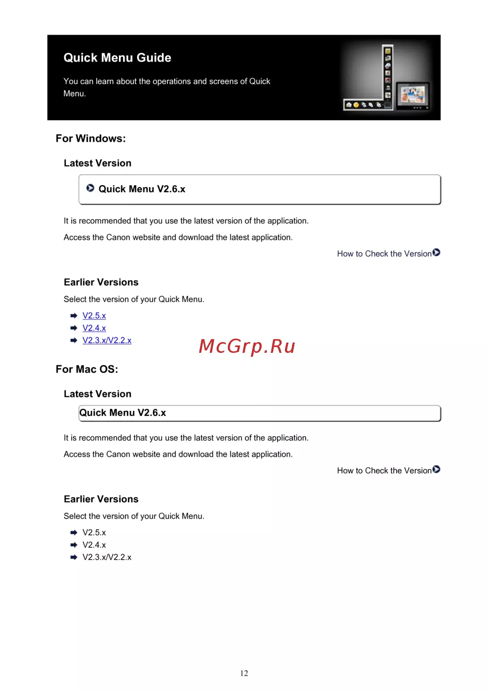 Canon Pixma MP280Руководство по меню Quick Menu (Windows) -