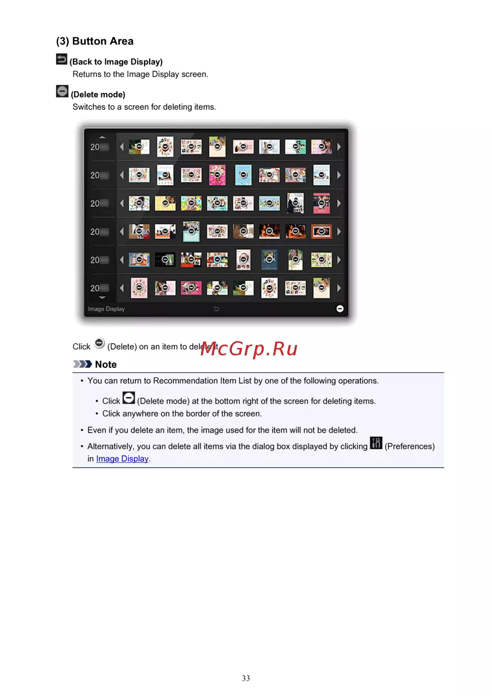• Even if you delete an item, the image used for the item will not be deleted.