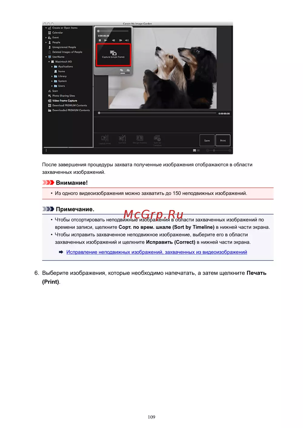 - Захват и печать неподвижных изображений из видеоизображений 107 p.3
