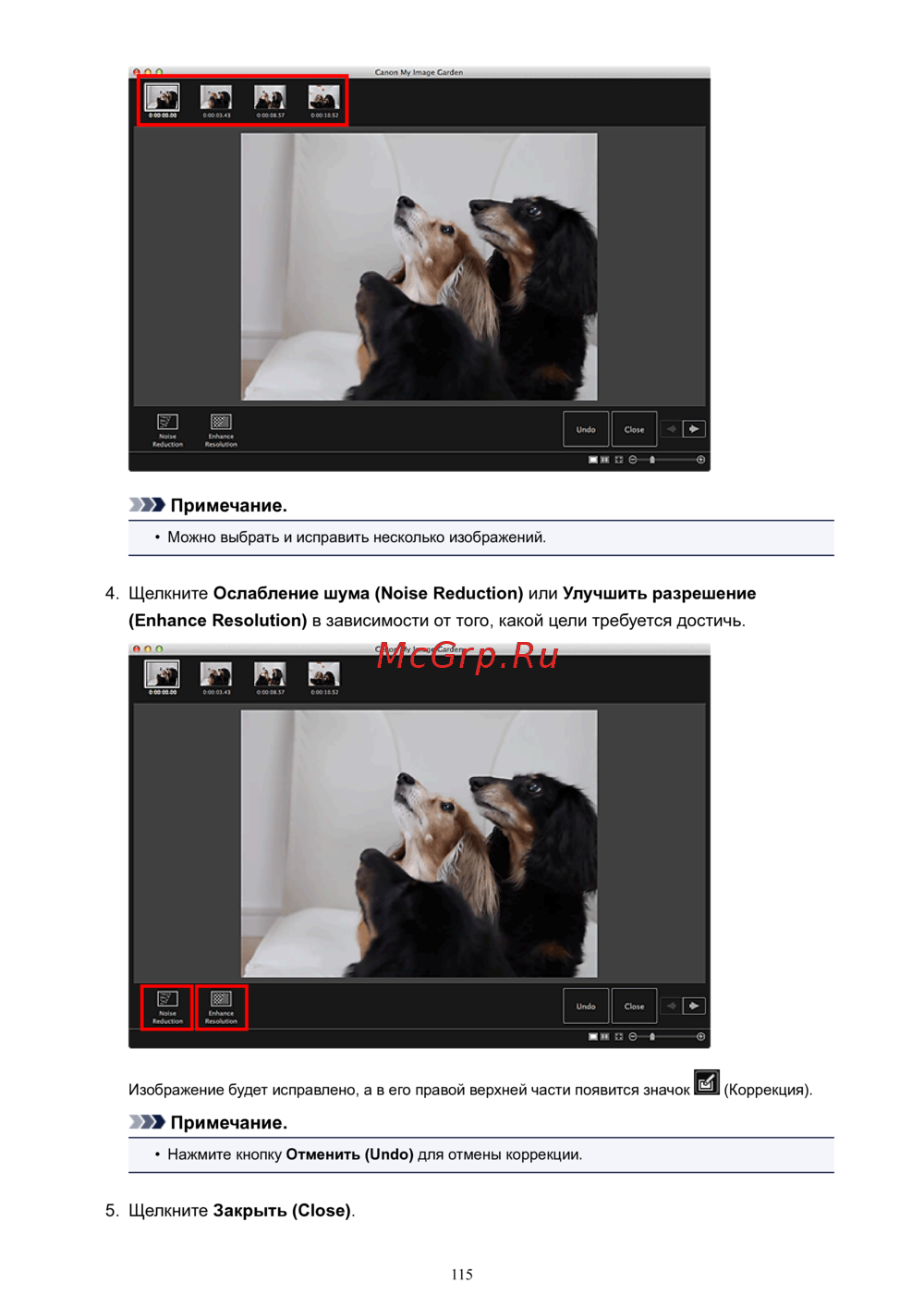Щелкните Ослабление шума (Noise Reduction) или Улучшить разрешение