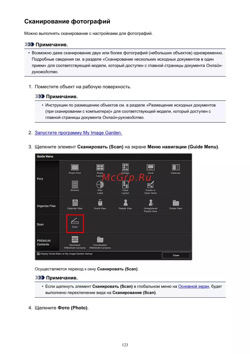 (при сканировании с компьютера)» для соответствующей модели, который доступен с