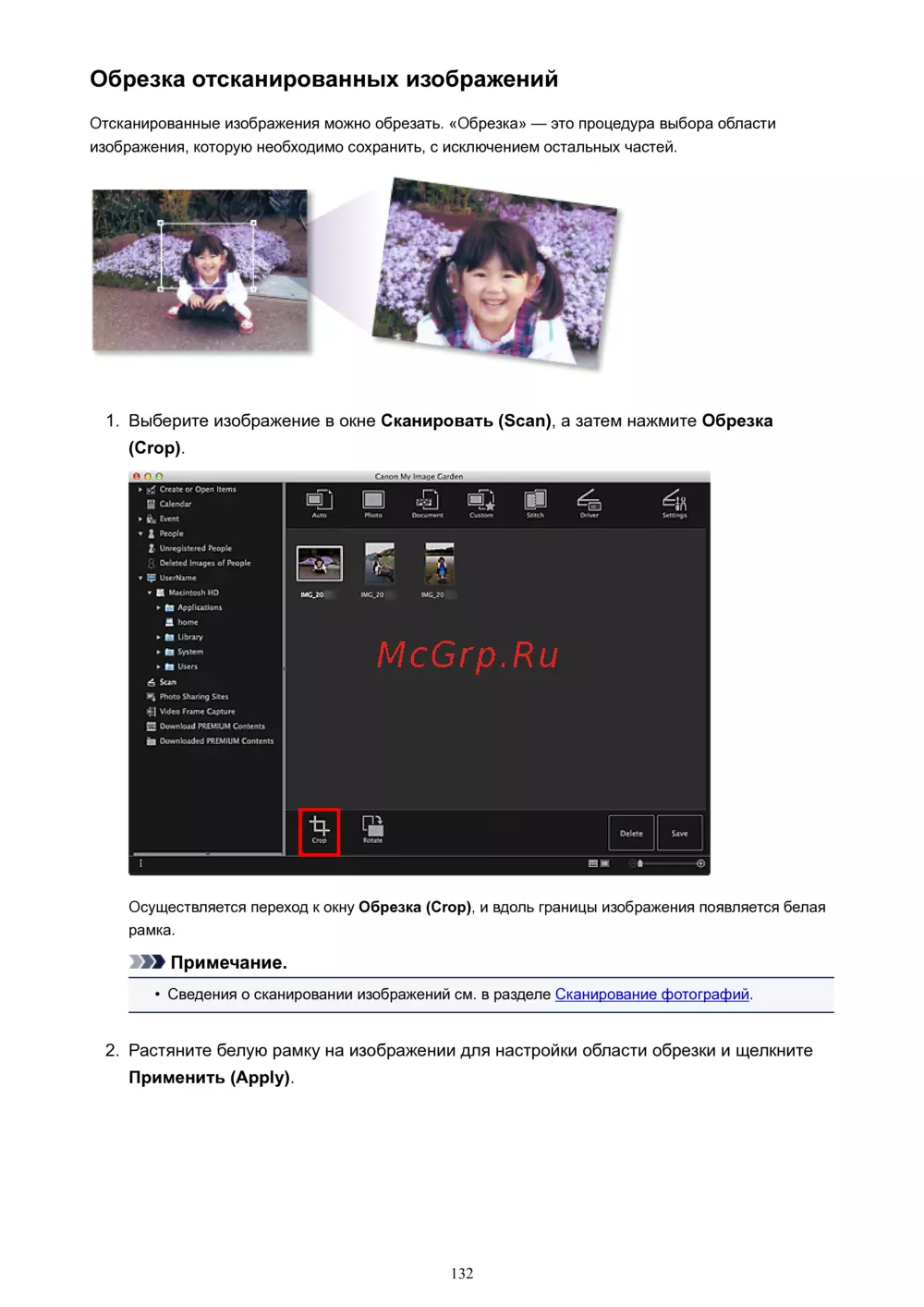 Отсканированные изображения можно обрезать. «Обрезка» — это процедура выбора области