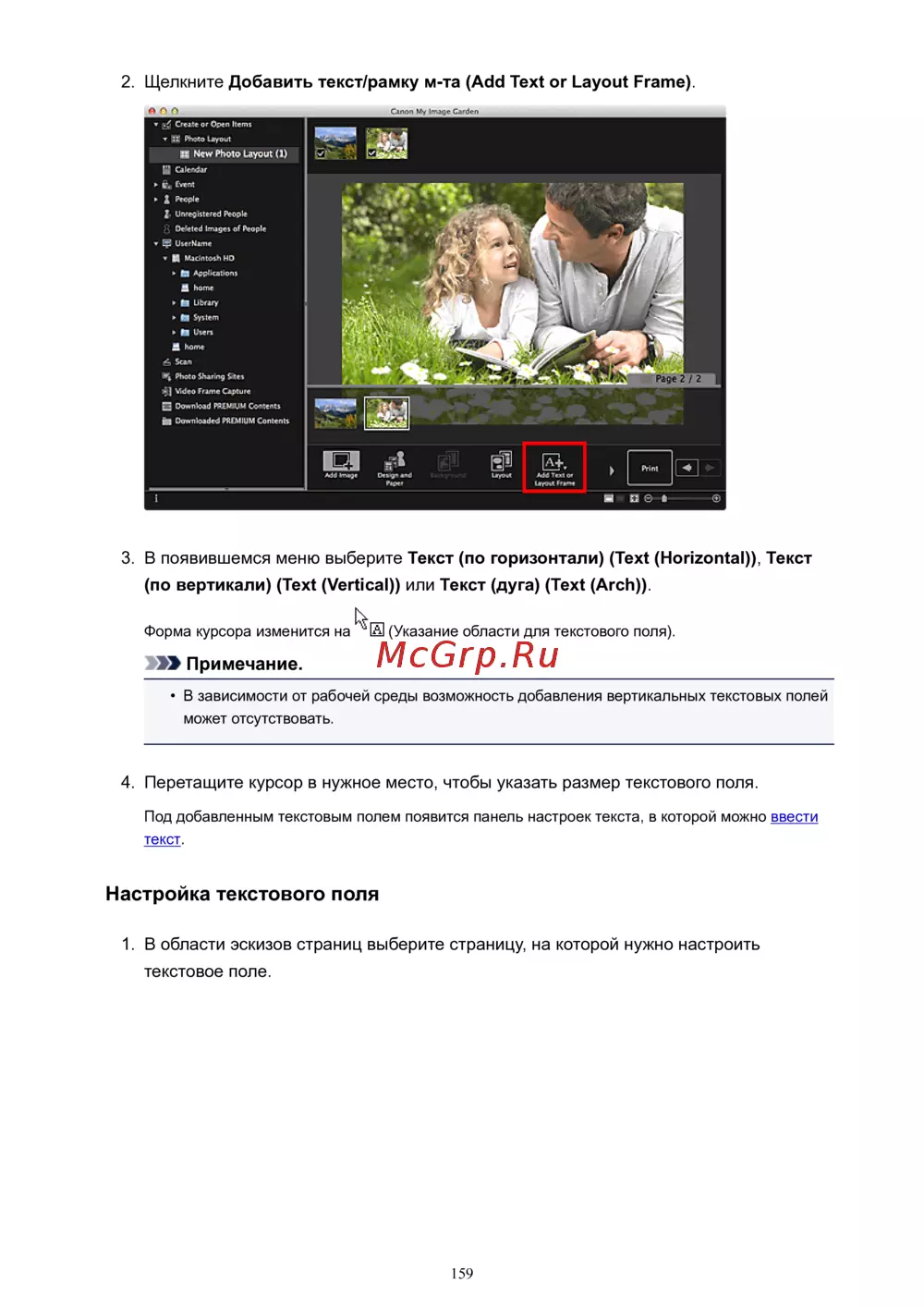 Canon Pixma MP280 — добавление текстовых полей в дизайнере: инструкция по настройке [159/339]