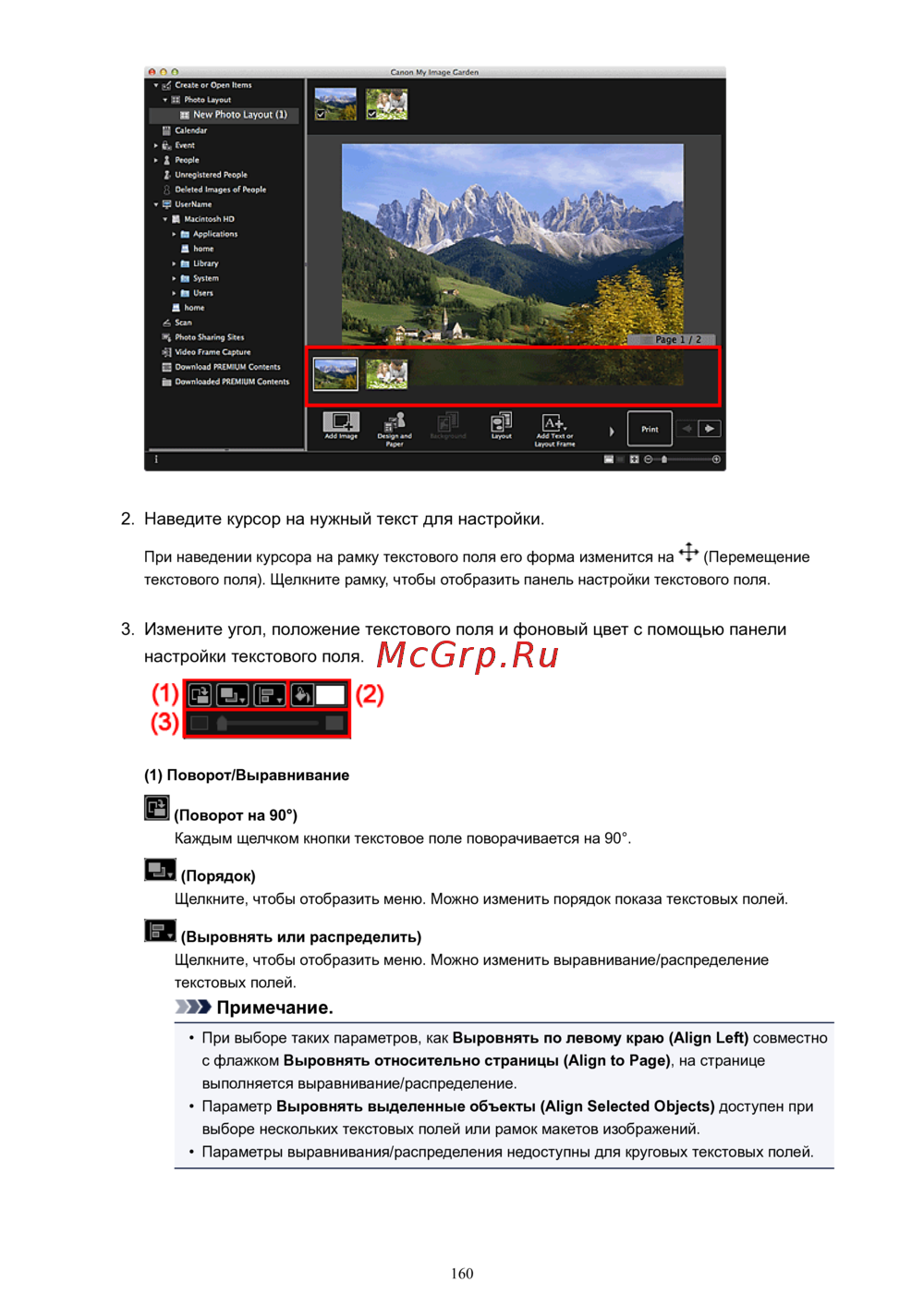 Canon Pixma MP280 — настройка текстовых полей: изменение формы и выравнивание [160/339]