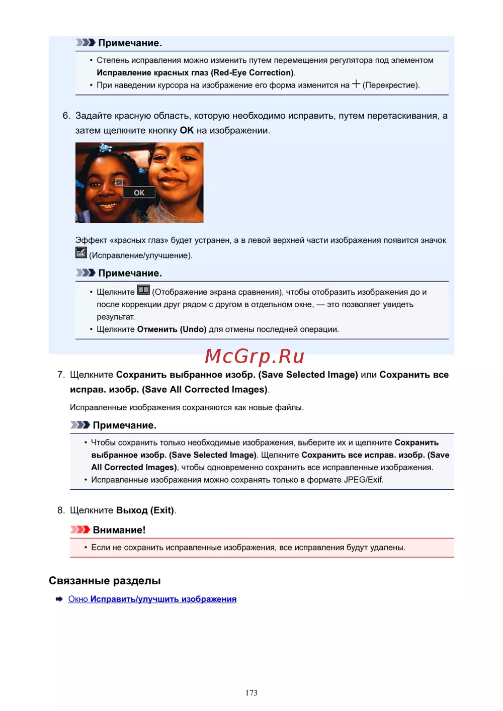 выбранное изобр. (Save Selected Image). Щелкните Сохранить все исправ. изобр. (Save