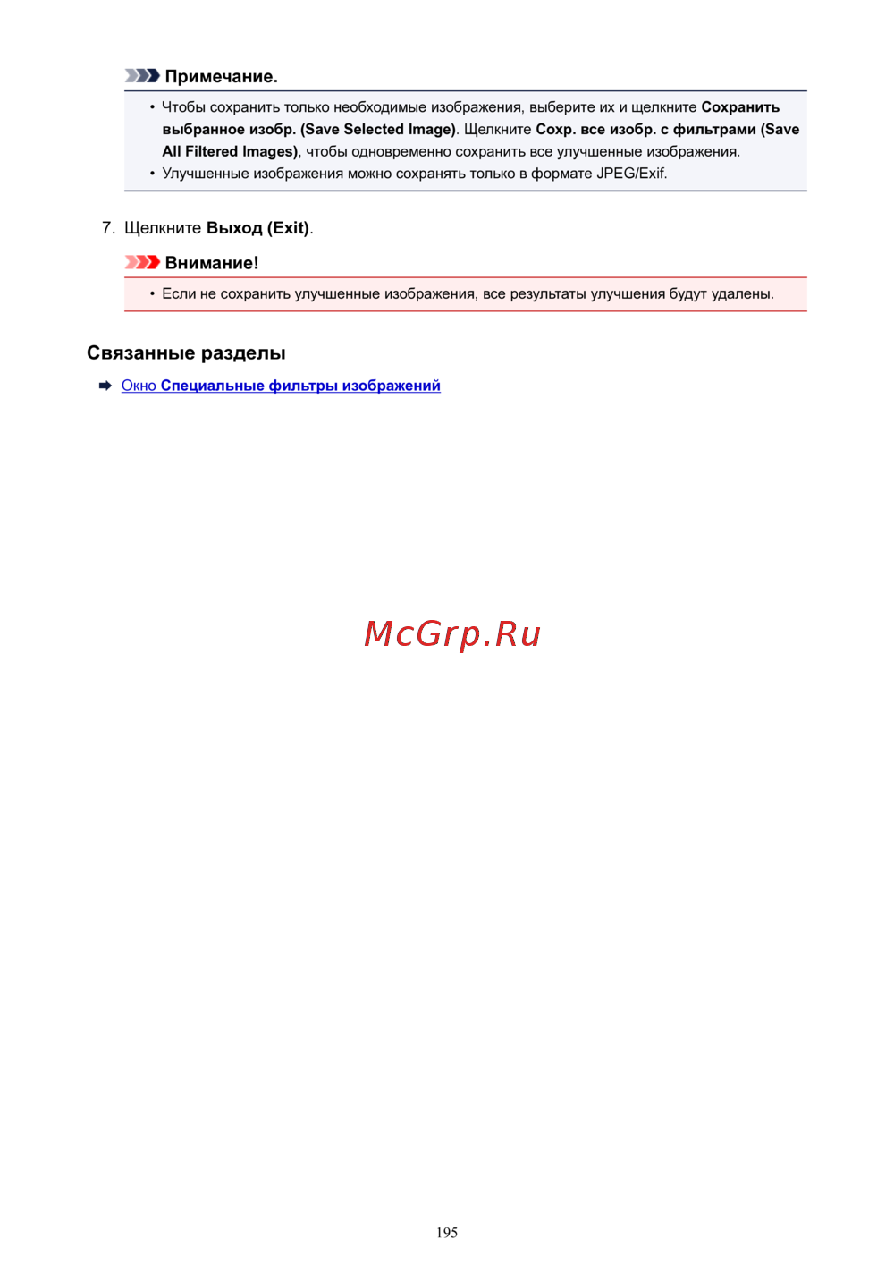 • Улучшенные изображения можно сохранять только в формате JPEG/Exif.