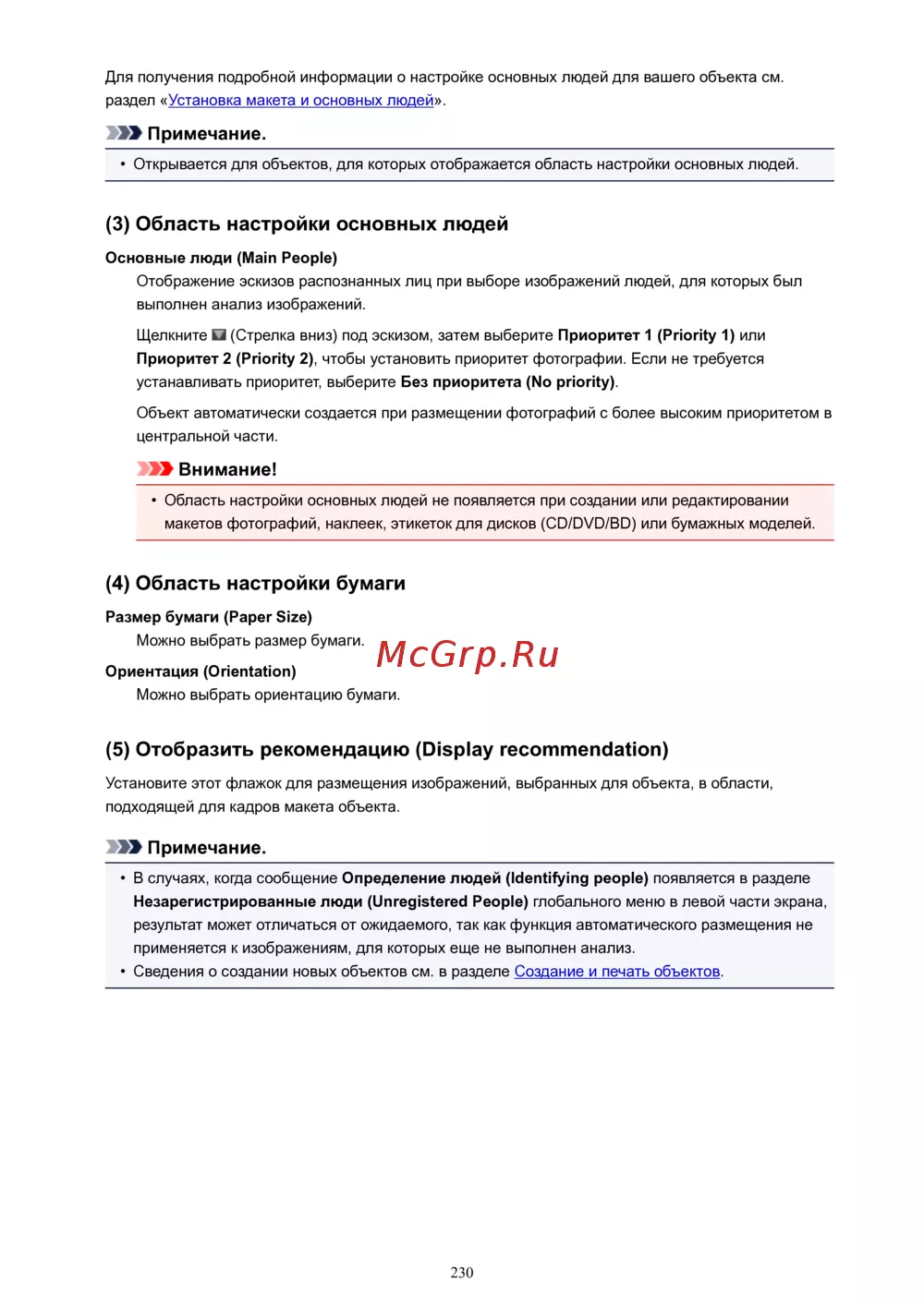 Узнайте, как настроить основных людей и параметры макета для ваших объектов. Получите советы по установке приоритета изображений и выбору размера бумаги.