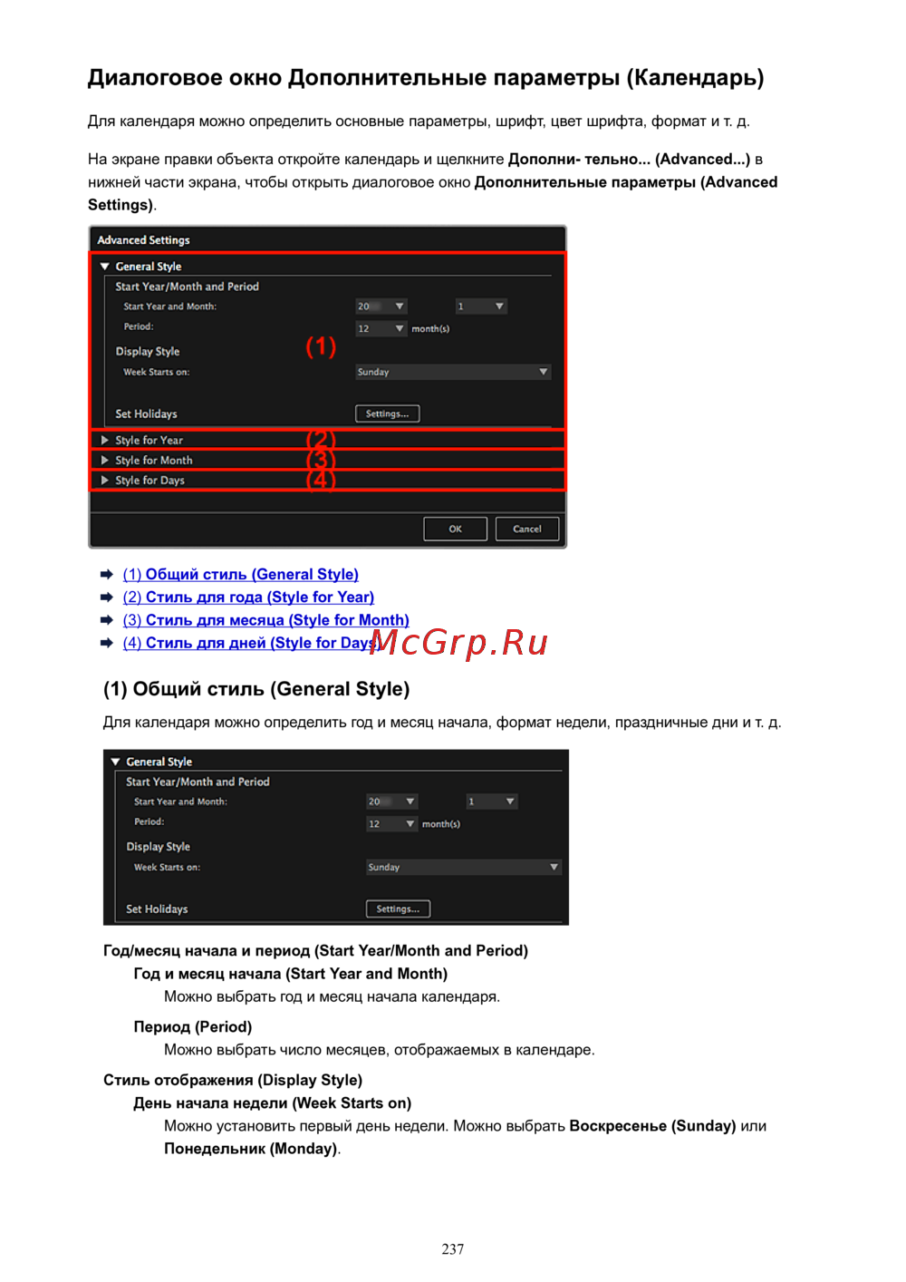 Canon Pixma MP280 [237/339] Диалоговое окно дополнительные параметры календарь
