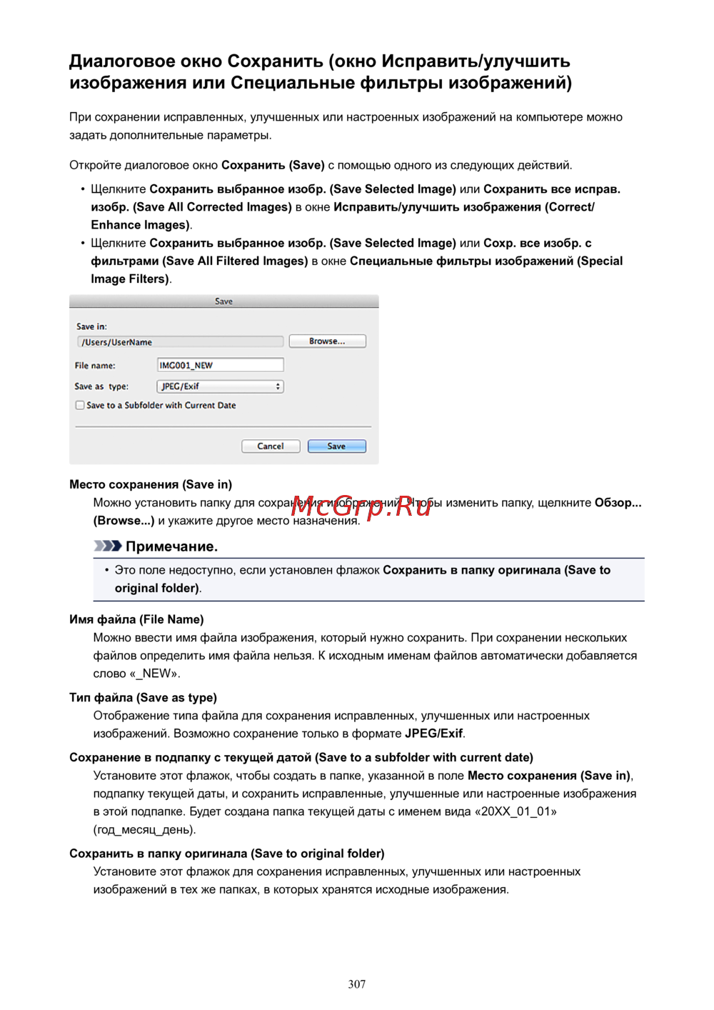 - Диалоговое окно сохранить окно исправить улучшить изображения или специальные фильтры изображений p.307