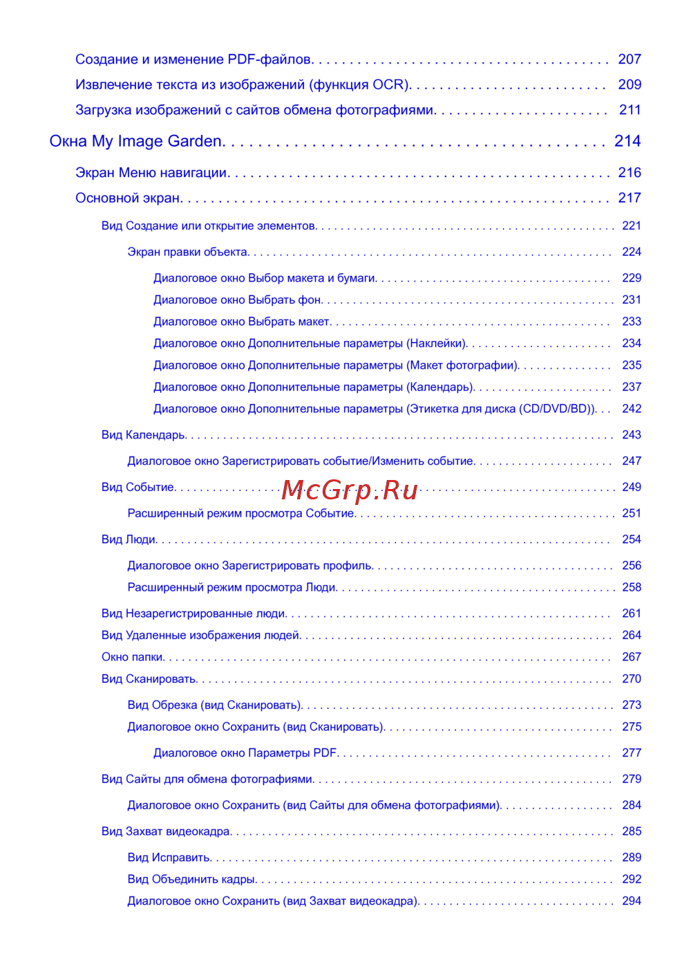 Окна My Image Garden. . . . . . . . . . . . . . . . . . . . . . . . . . . . . . . . . . . . . . . . . . . 214