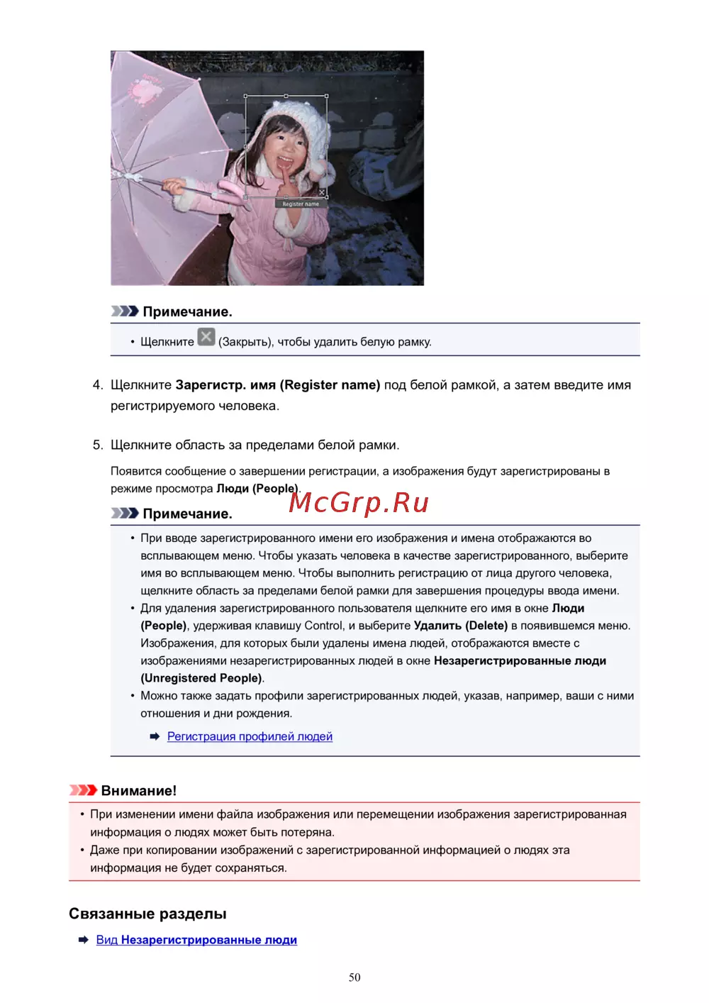 • Даже при копировании изображений с зарегистрированной информацией о людях эта