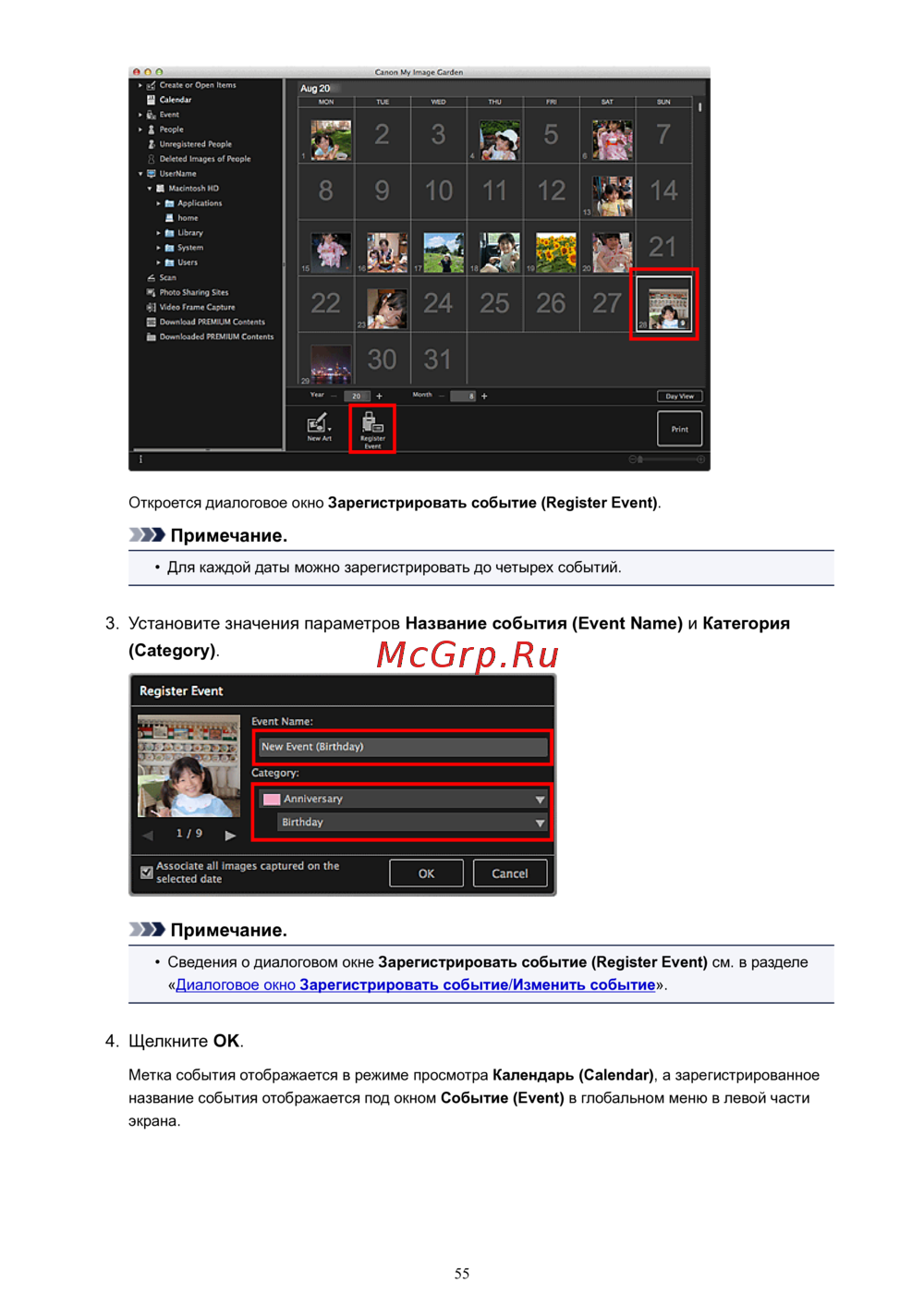 Canon Pixma MP280 — как зарегистрировать события в календаре: пошаговое руководство [55/339]