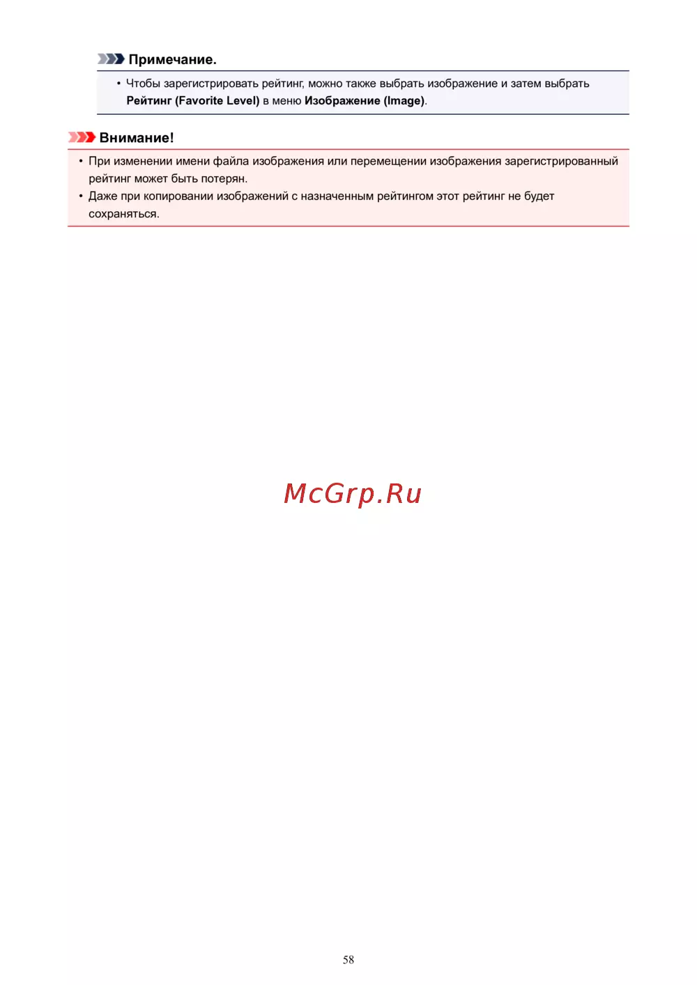 • Даже при копировании изображений с назначенным рейтингом этот рейтинг не будет