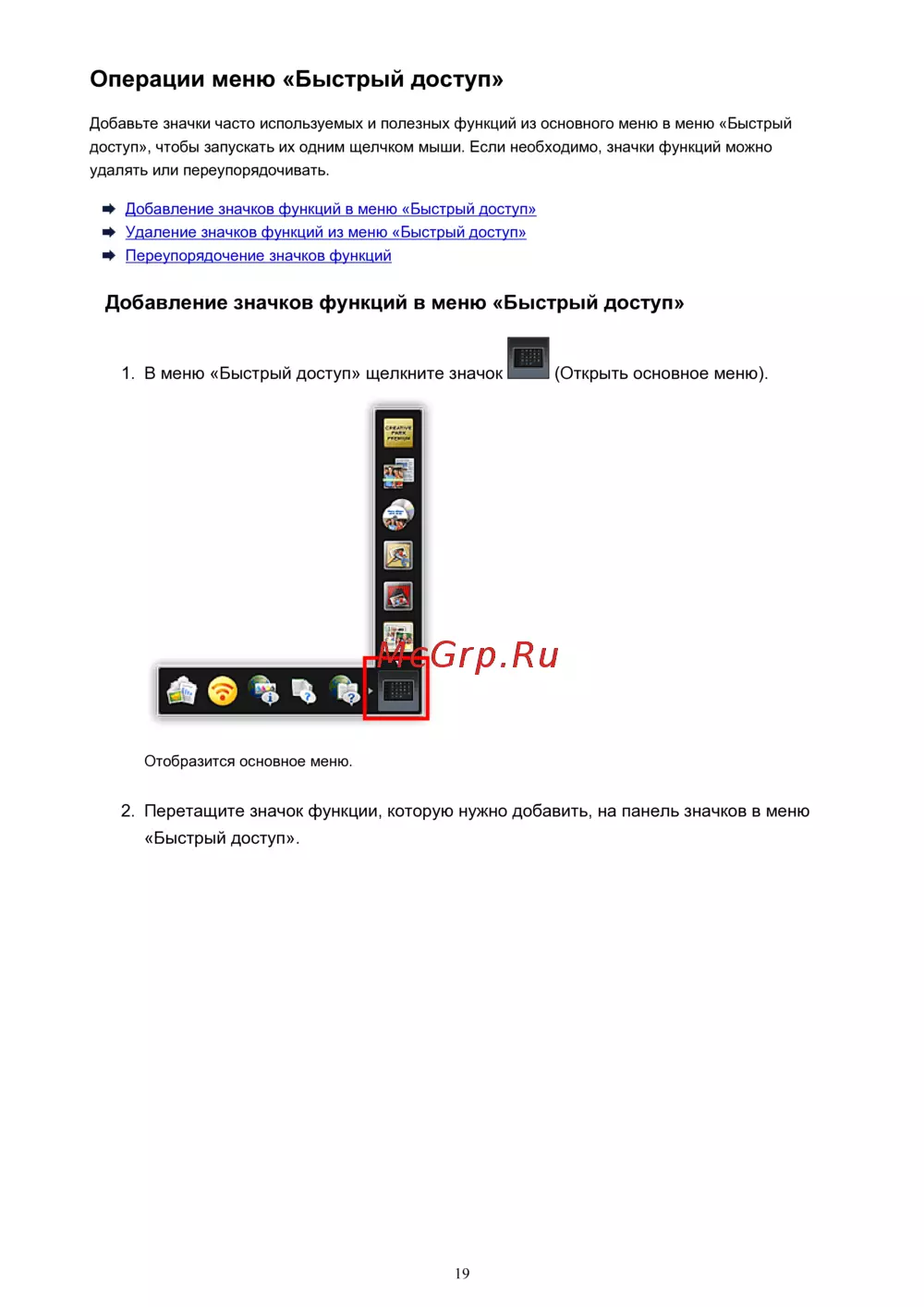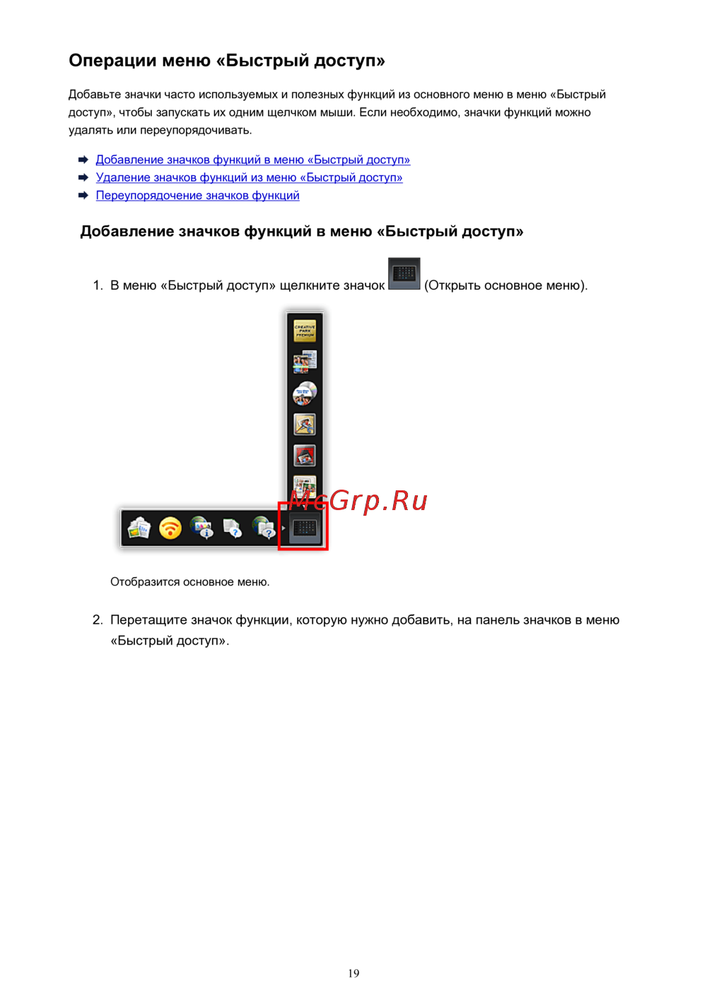 Canon Pixma MP280 [19/36] Перетащите значок функции которую нужно добавить на панель значков в меню