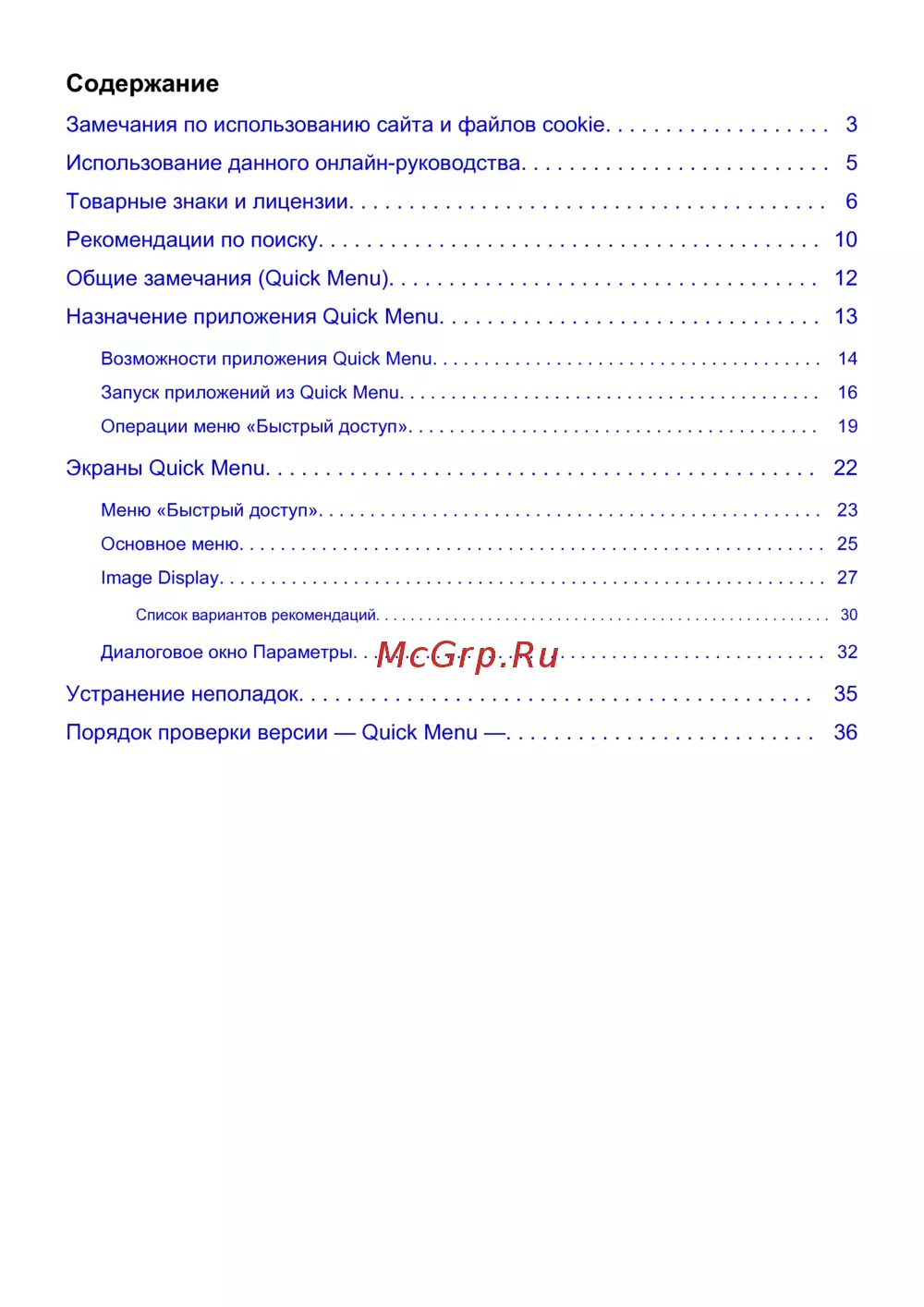 Общие замечания (Quick Menu). . . . . . . . . . . . . . . . . . . . . . . . . . . . . . . . . . . . 12