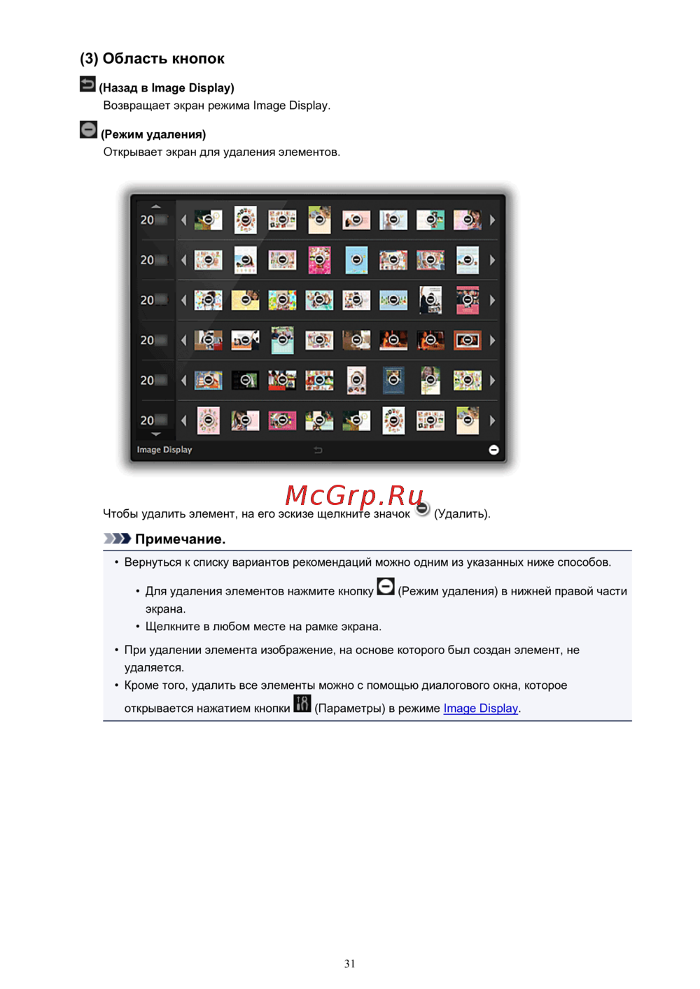 - 3 область кнопок p.31