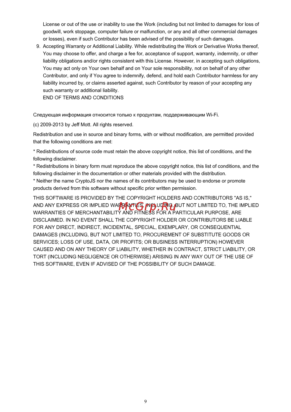 9. Accepting Warranty or Additional Liability. While redistributing the Work or Derivative Works thereof,