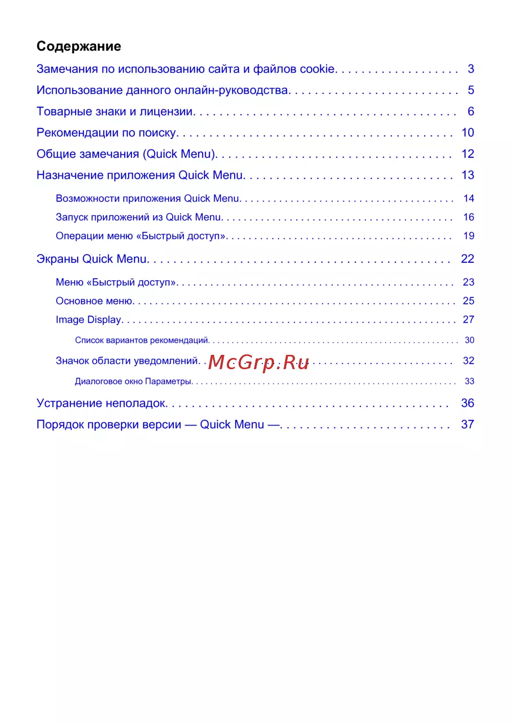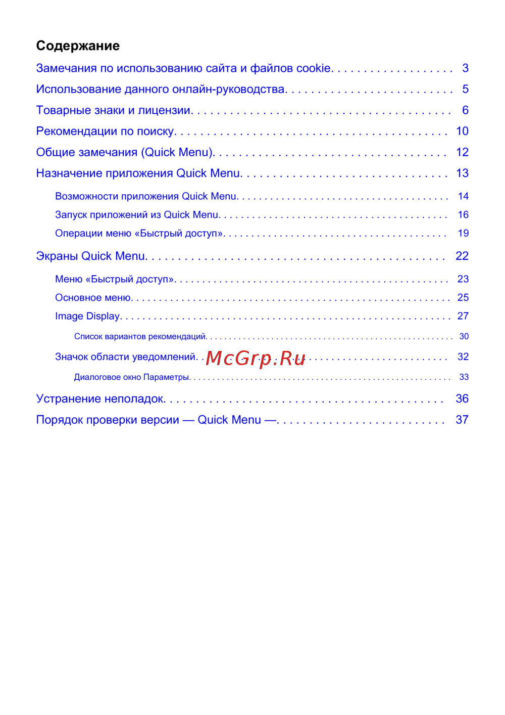 Общие замечания (Quick Menu). . . . . . . . . . . . . . . . . . . . . . . . . . . . . . . . . . . . 12