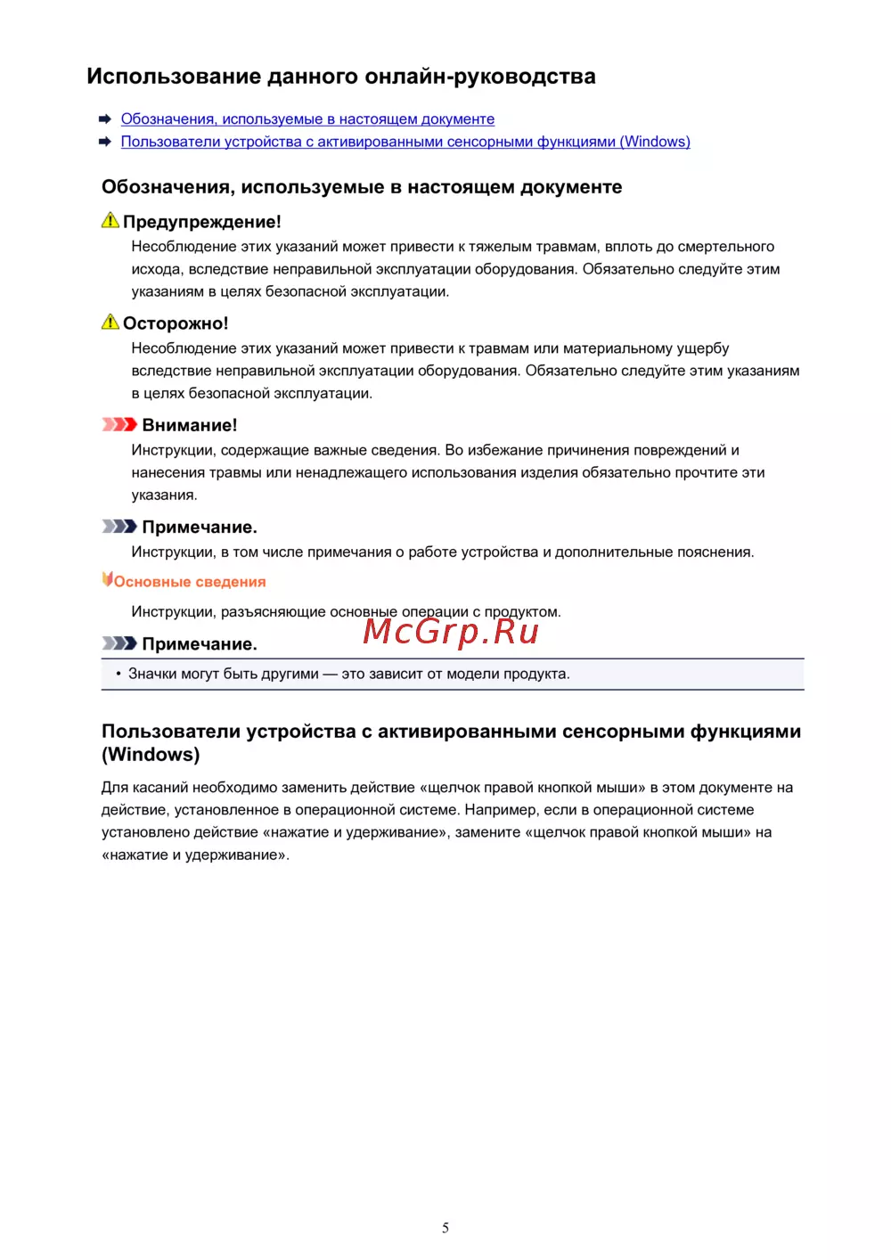 - Использование данного онлайн руководства p.5