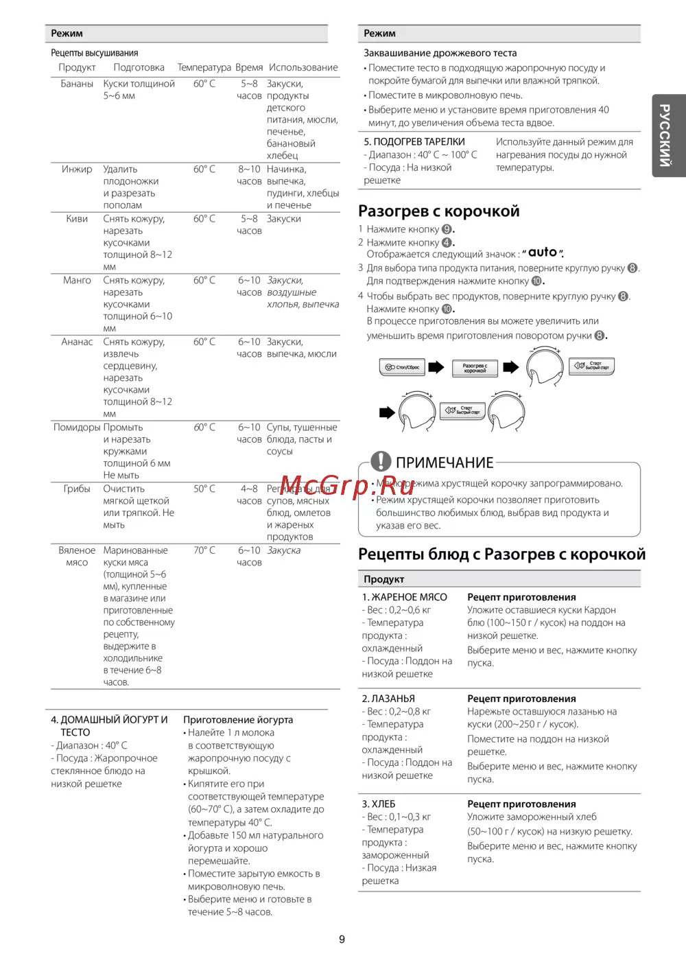 LG MJ3294BAB [9/14] Рецепты блюд с pазогрев с корочĸой