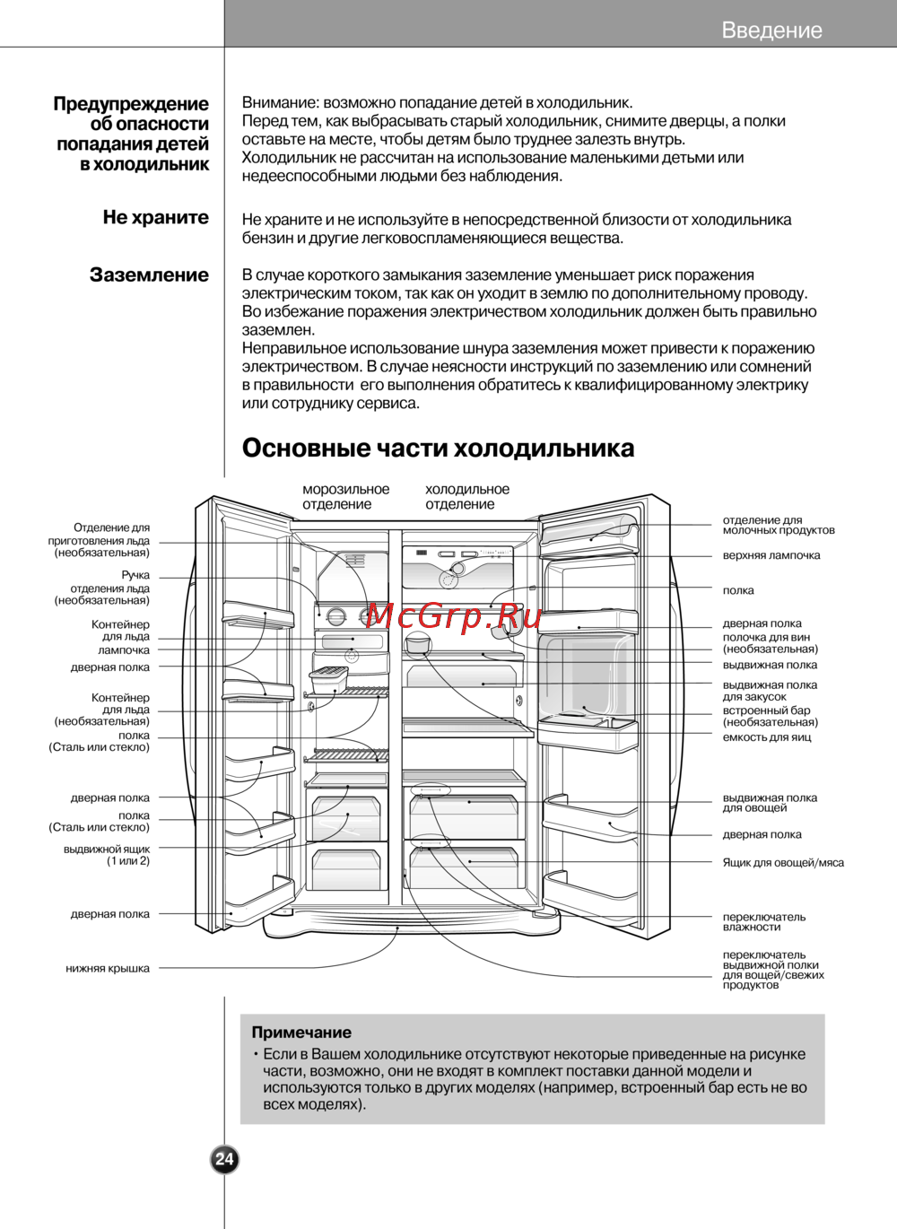 LG GR-B197 GVCA — основные части холодильника и меры безопасности для детей [4/21]