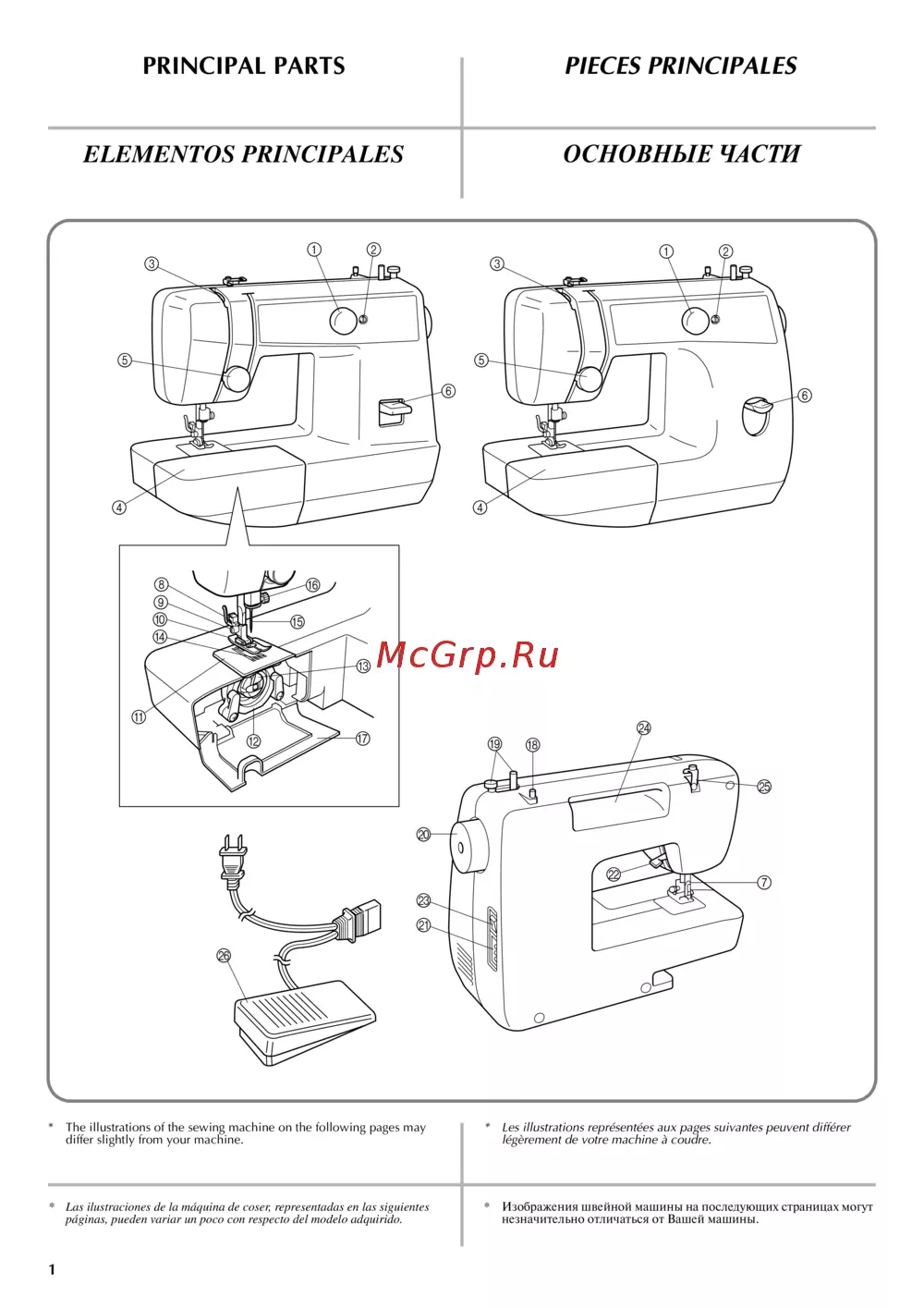 * Изображения швейной машины на последующих страницах могут