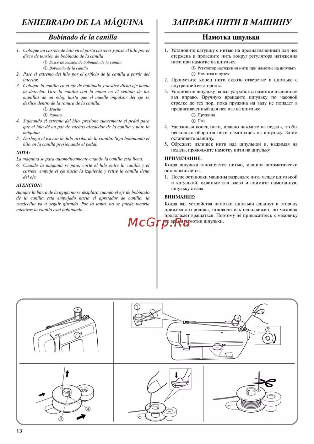 Brother LS 2150 — guía para el bobinado de la canilla en máquinas de coser [22/67]
