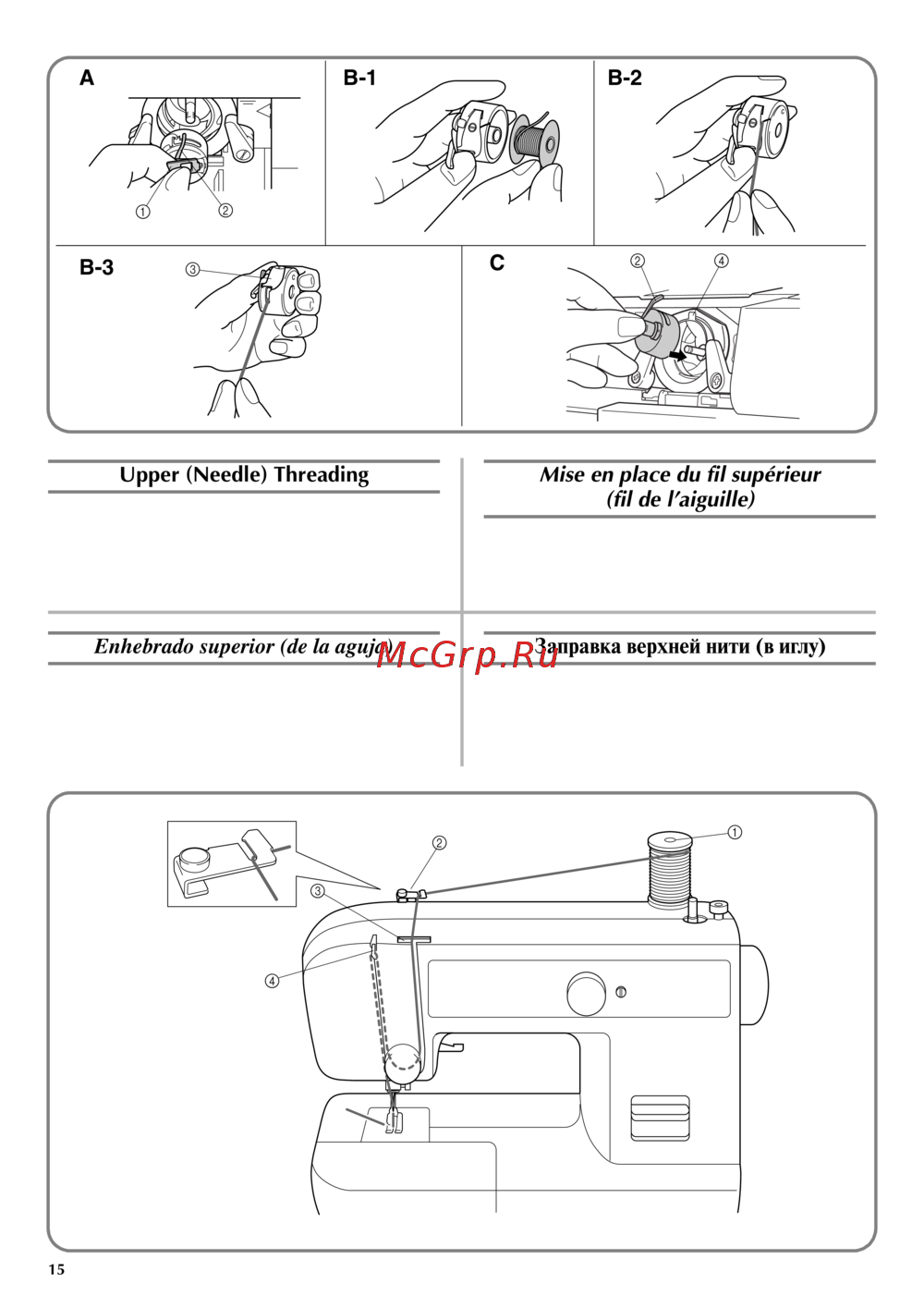 Enhebrado superior (de la aguja) Заправка верхней нити (в иглу)