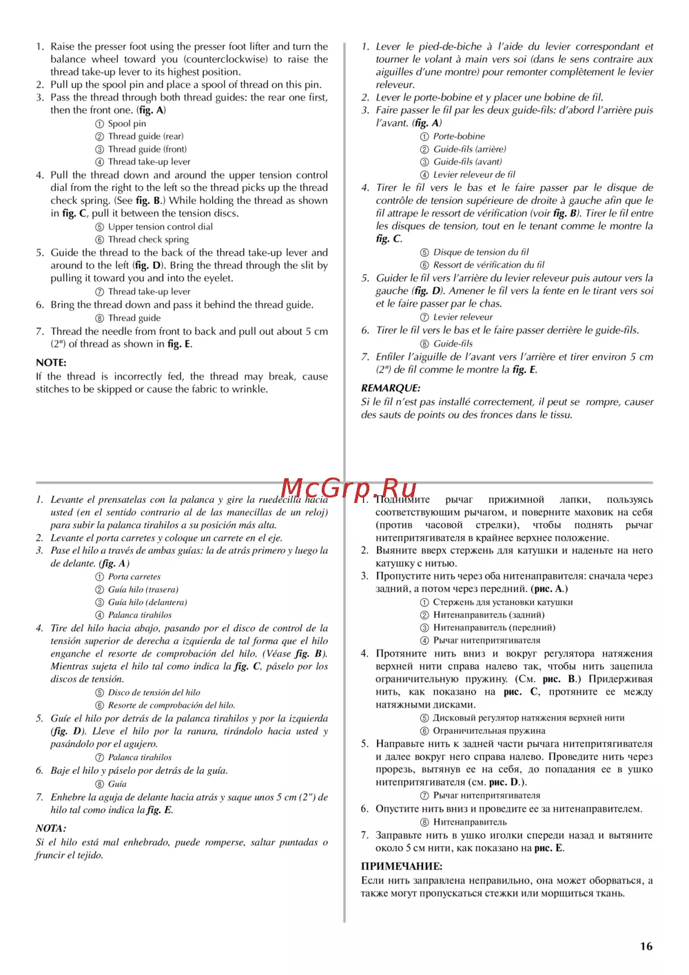 (fig. D). Lleve el hilo por la ranura, tirándolo hacia usted y