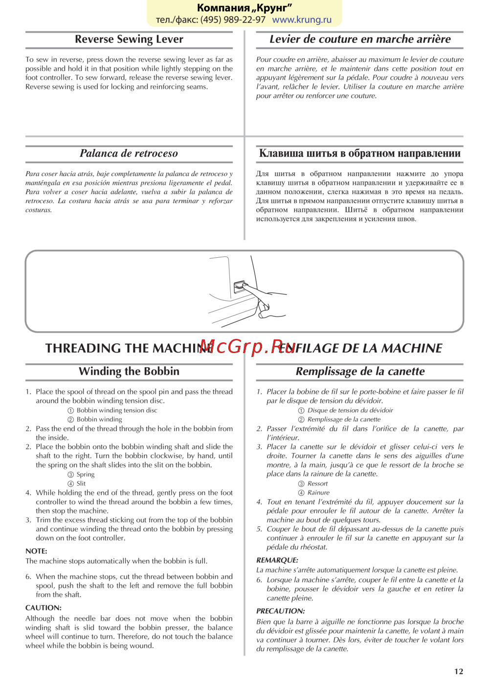 Learn how to use the reverse sewing lever for seam reinforcement and bobbin winding techniques for your sewing machine. Clear step-by-step instructions for smooth operation.