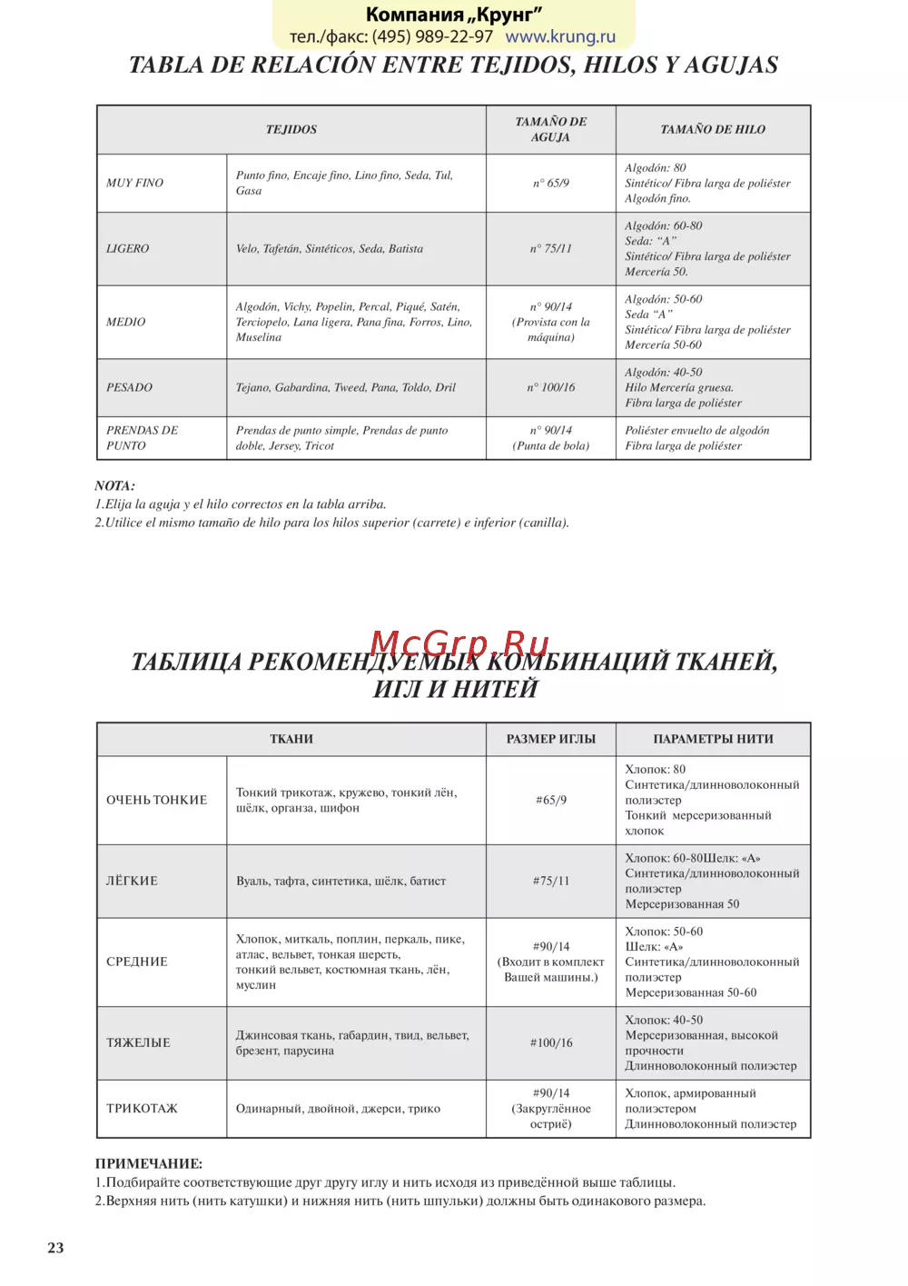 1.Подбирайте соответствующие друг другу иглу и нить исходя из приведённой выше таблицы.
