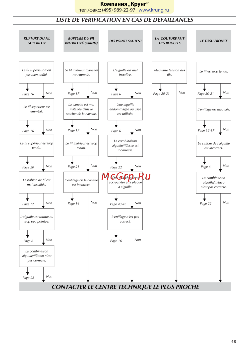 LISTE DE VERIFICATION EN CAS DE DEFAILLANCES