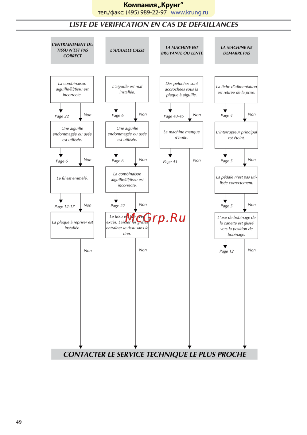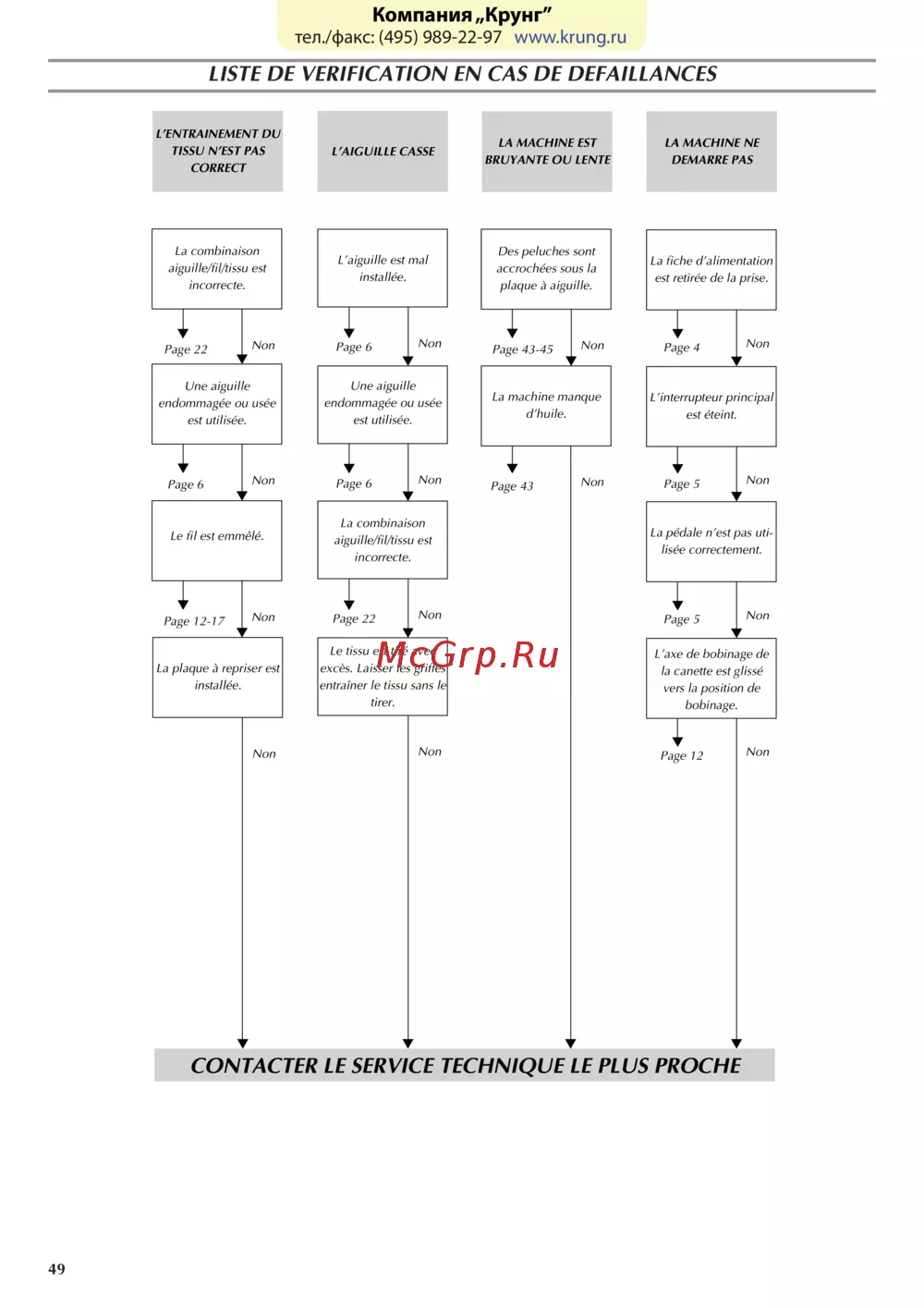 - Contacter le centre technique le plus proche p.53