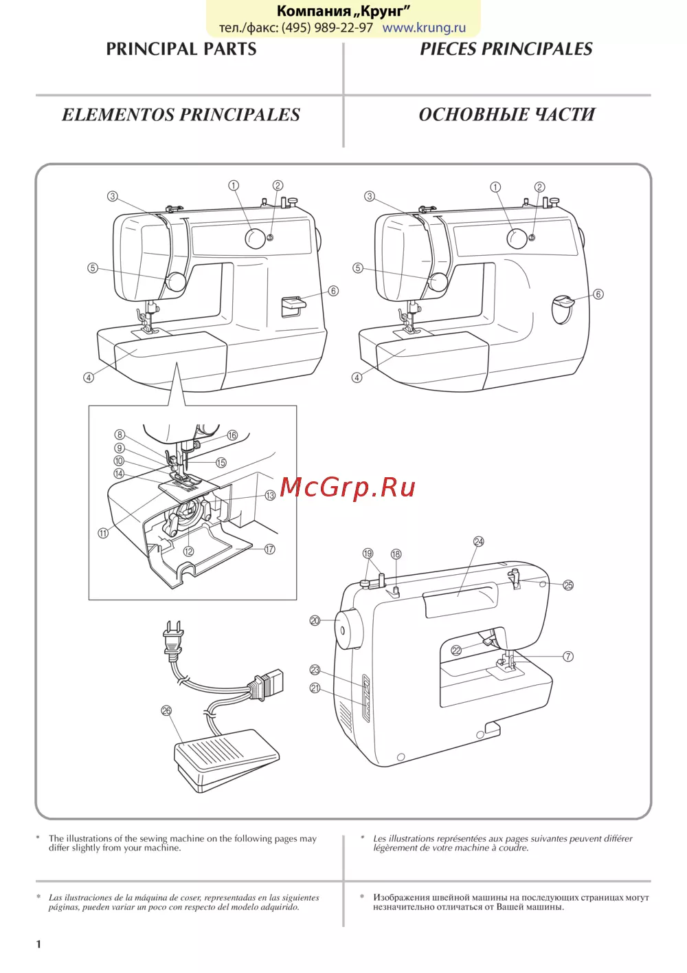 Brother LS 2125 — основные части швейной машины: руководство и инструкция [6/64]