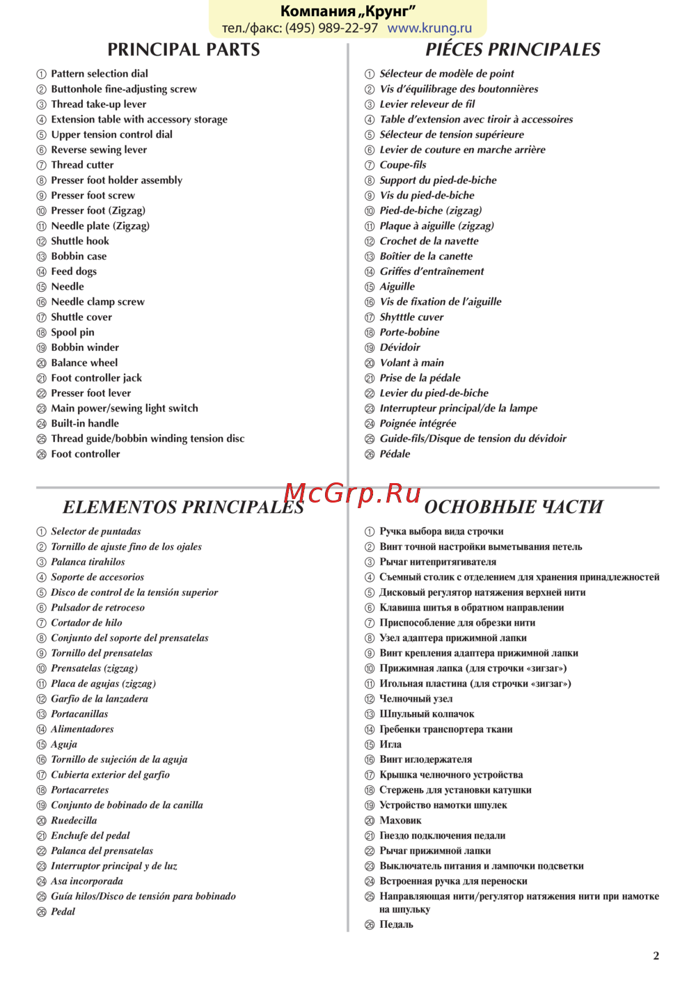 ![Brother LS 2125 [7/64] Основные части](/views2/1014700/page7/bg7.png)