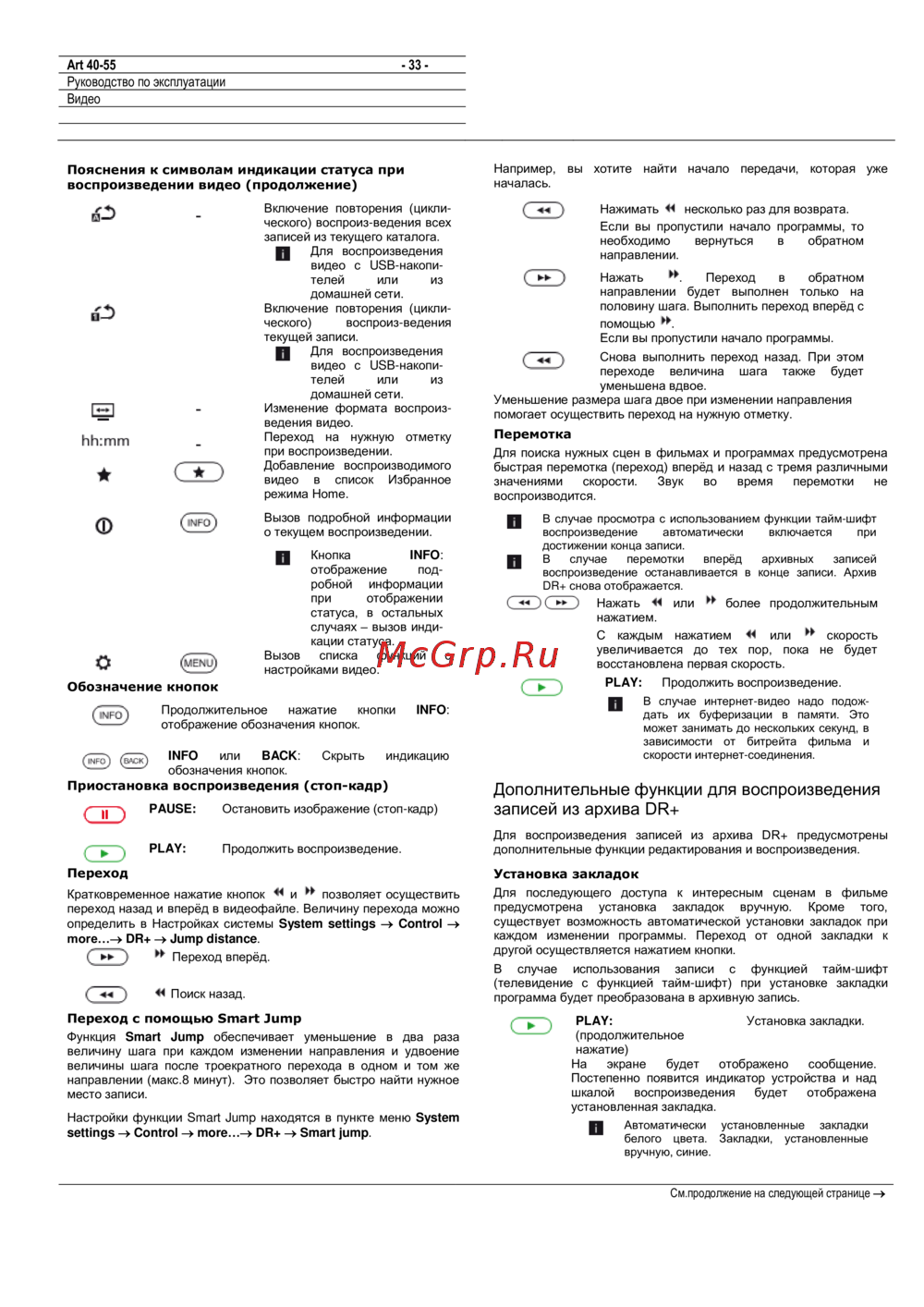 - Дополнительные функции для воспроизведения записей из архива dr p.33