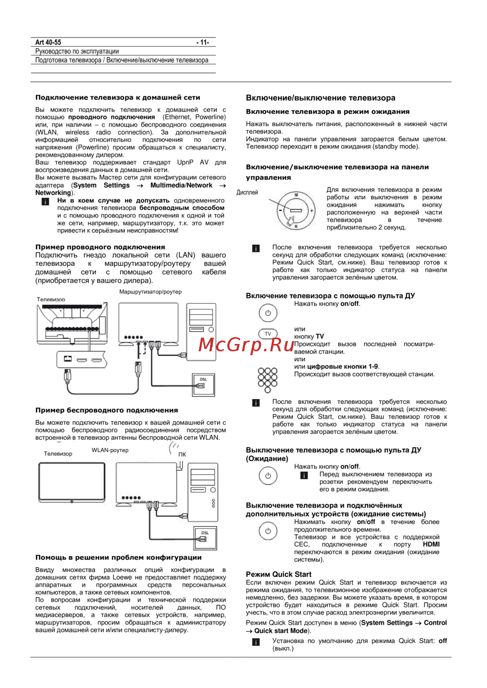 Режим Quick Start, см.ниже). Ваш телевизор готов к