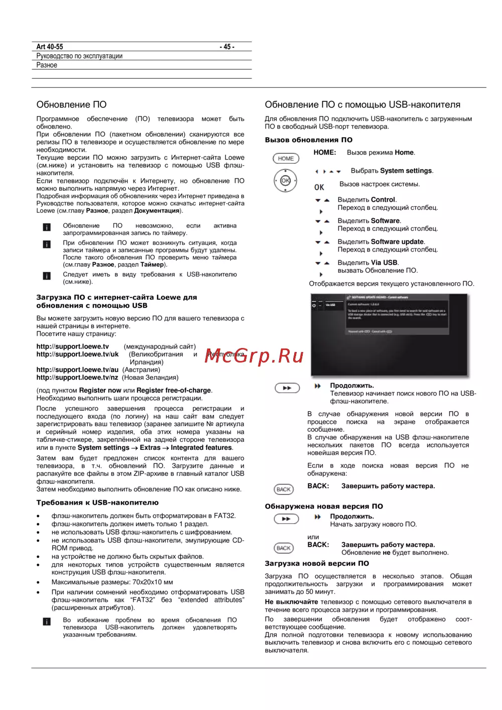 - Обновление по с помощью usb накопителя p.45