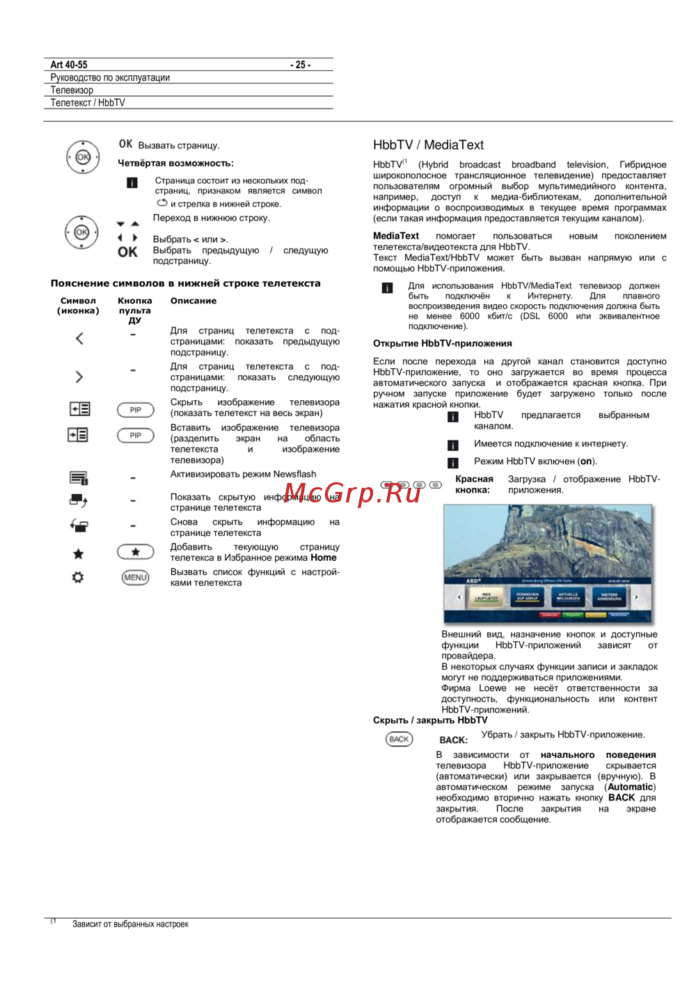 Текст MediaText/HbbTV может быть вызван напрямую или с