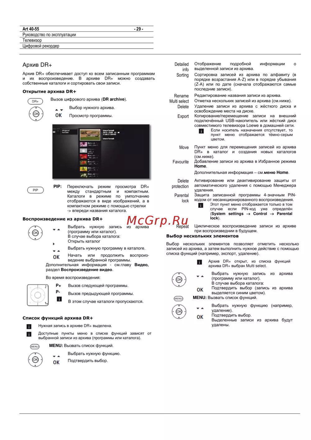 - Дополнительные функции для воспроизведения записей из архива dr p.33