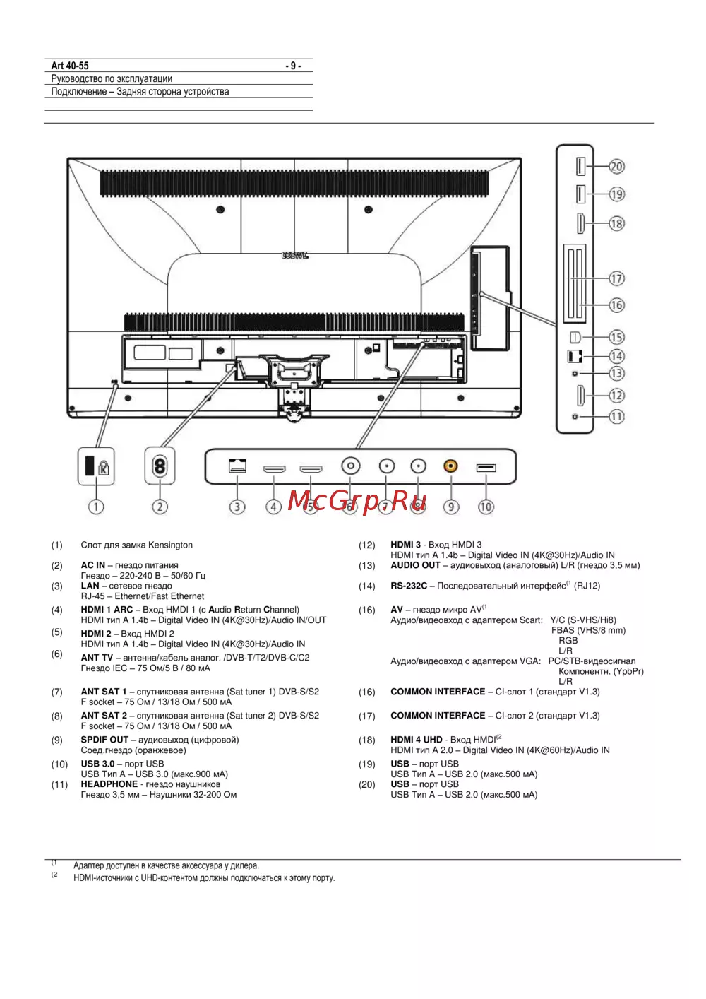 HDMI 1 ARC – Вход HMDI 1 (с Audio Return Channel)