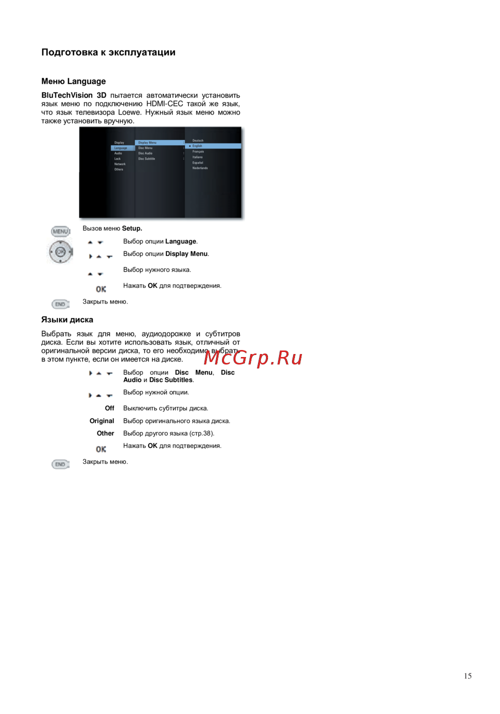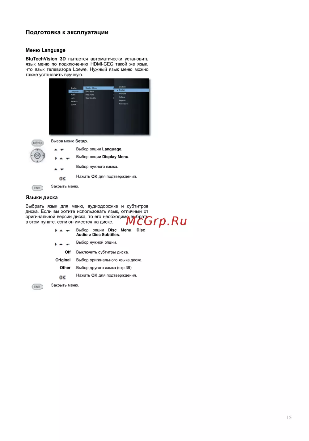 Select option Disc Menu, Disc Audio or Disc Subtitles.