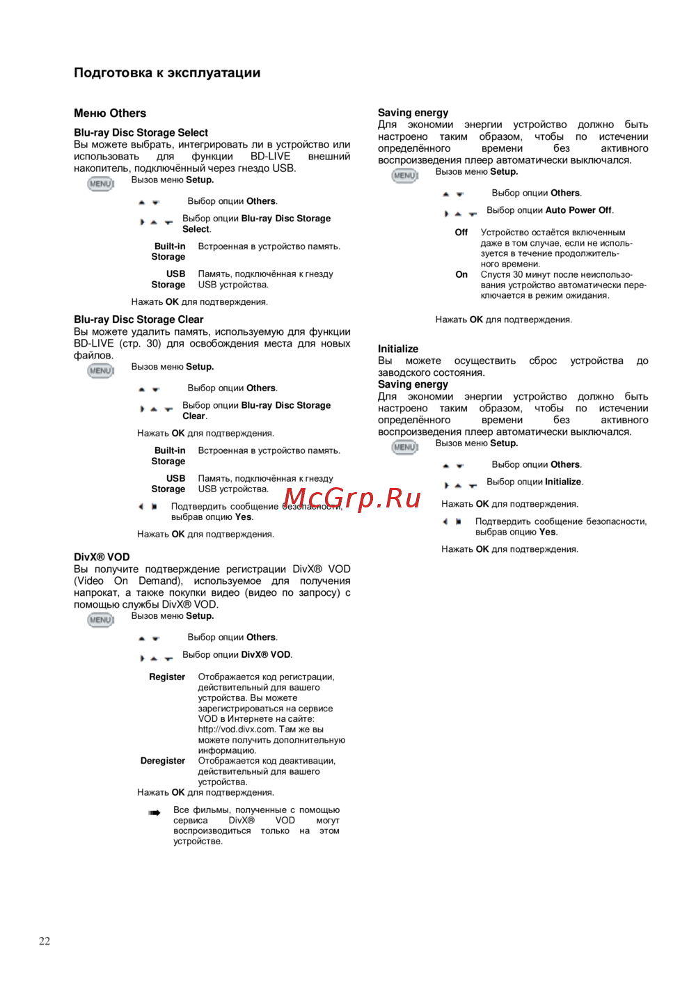 - Blu ray disc blu ray blu ray 3d bd live bonusview и логотипы являются торговыми марками blu ray disc association о divx видео divx является форматом цифрового видео созданным divx inc устройство является официальным сертифицированным divx certified устройством для воспроизведения divx видео дополнительная информация и по для конвертации файлов в divx видео см сайт www divx com о divx видео по запросу video on demand это сертифицрованное divx certified устройство необходимо зарегистрировать для воспроизведения приобретённых видеофильмов divx video on demand vod для получения регистрационного кода найти раздел divx vod в меню конфигурации устройства правила заполнения регистрационной формы см сайт vod divx com divx divx certified и соответствующие логотипы являются торговыми марками divx inc и используются по лицензии hdmi логотип hdmi logo и high definition multimedia interface являются торговыми марками hdmi licensing llc изготовлено по лицензии dolby laboratories dolby prologic и симв p.39
