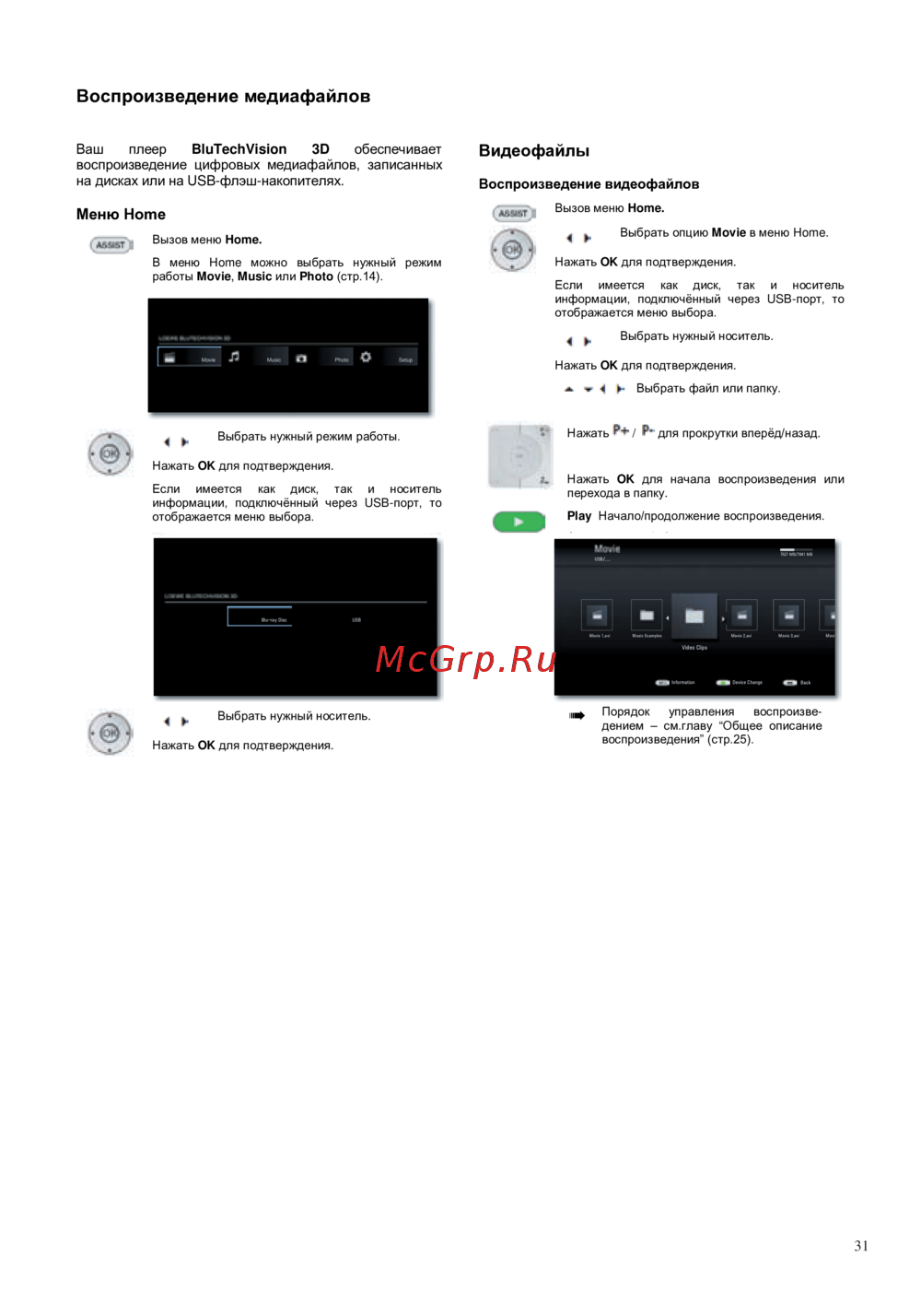 - With your blutechvision 3d you can playback digital media files which are saved on discs or on usb sticks p.31