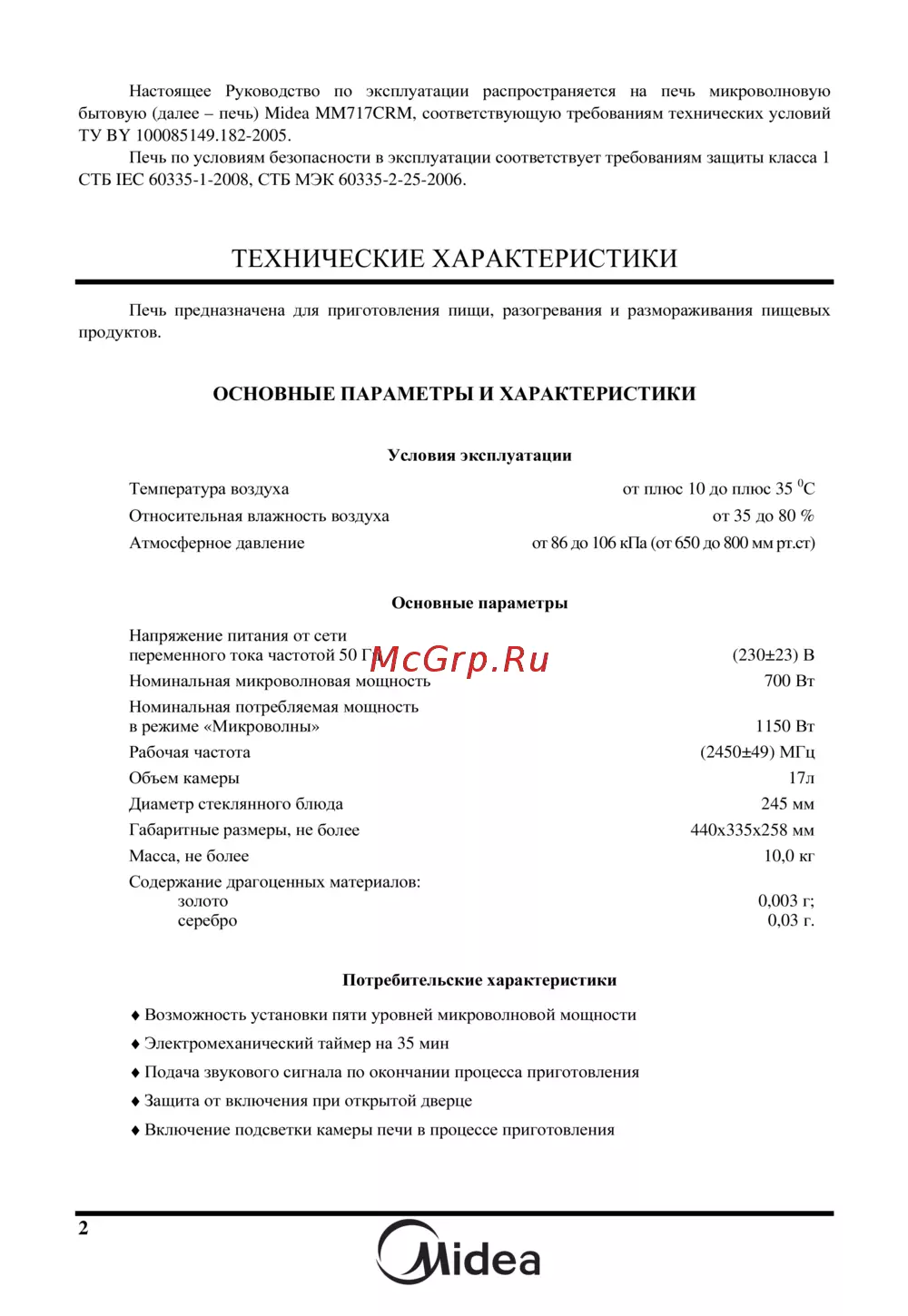 ![Midea MM717CRM [4/18] Технические характеристики](/views2/1147985/page4/bg4.png)