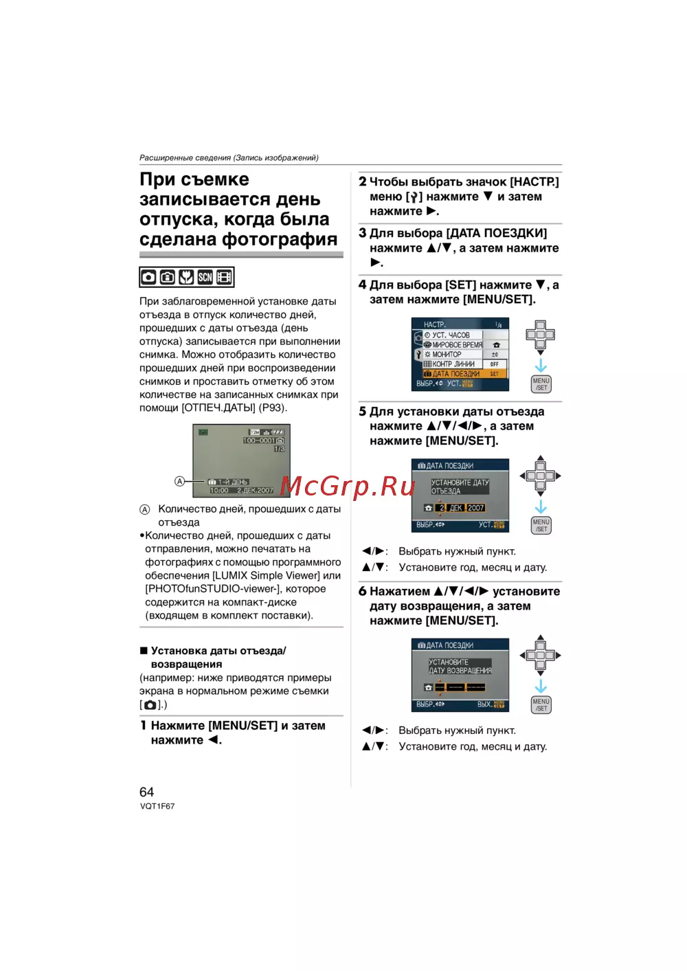 Panasonic DMC-FX100EEK — как установить дату отпуска для фотографий и видео [64/167]