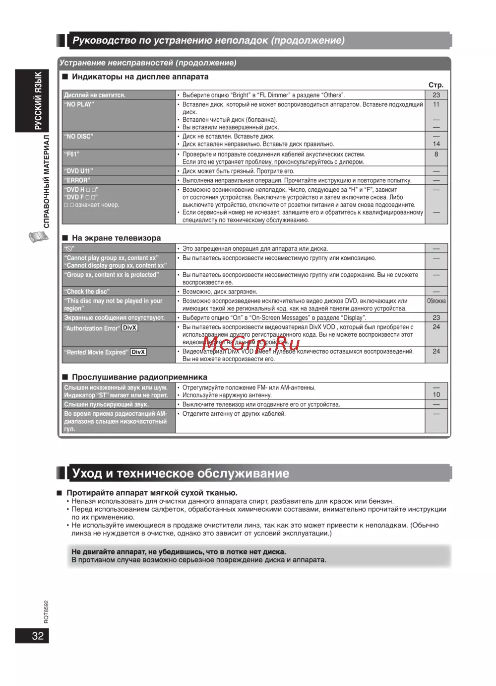 - Уход и техническое обслуживание p.32