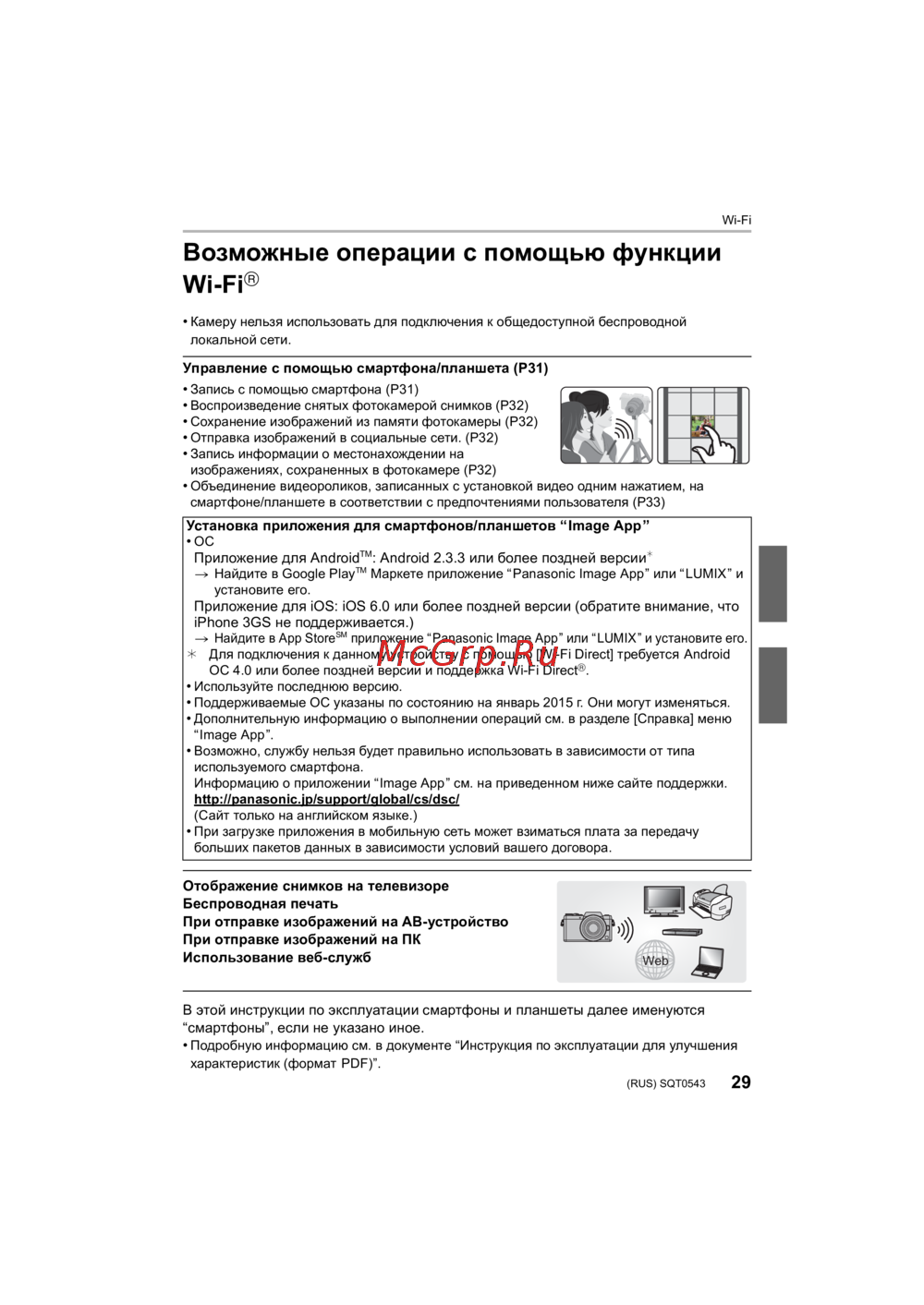 - Отображение снимков на телевизоре беспроводная печать при отправке изображений на ав устройство при отправке изображений на пк использование веб служб p.29